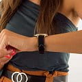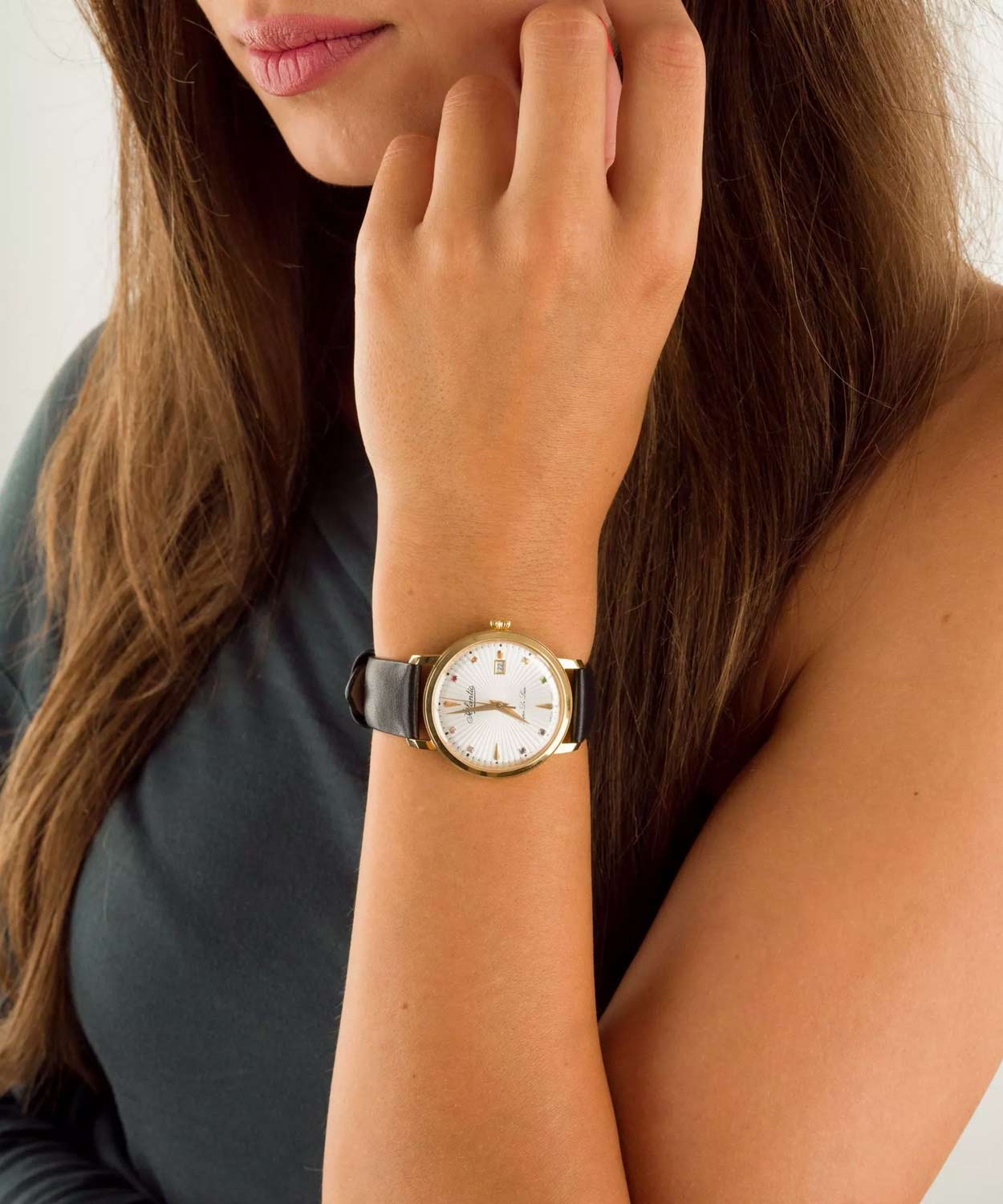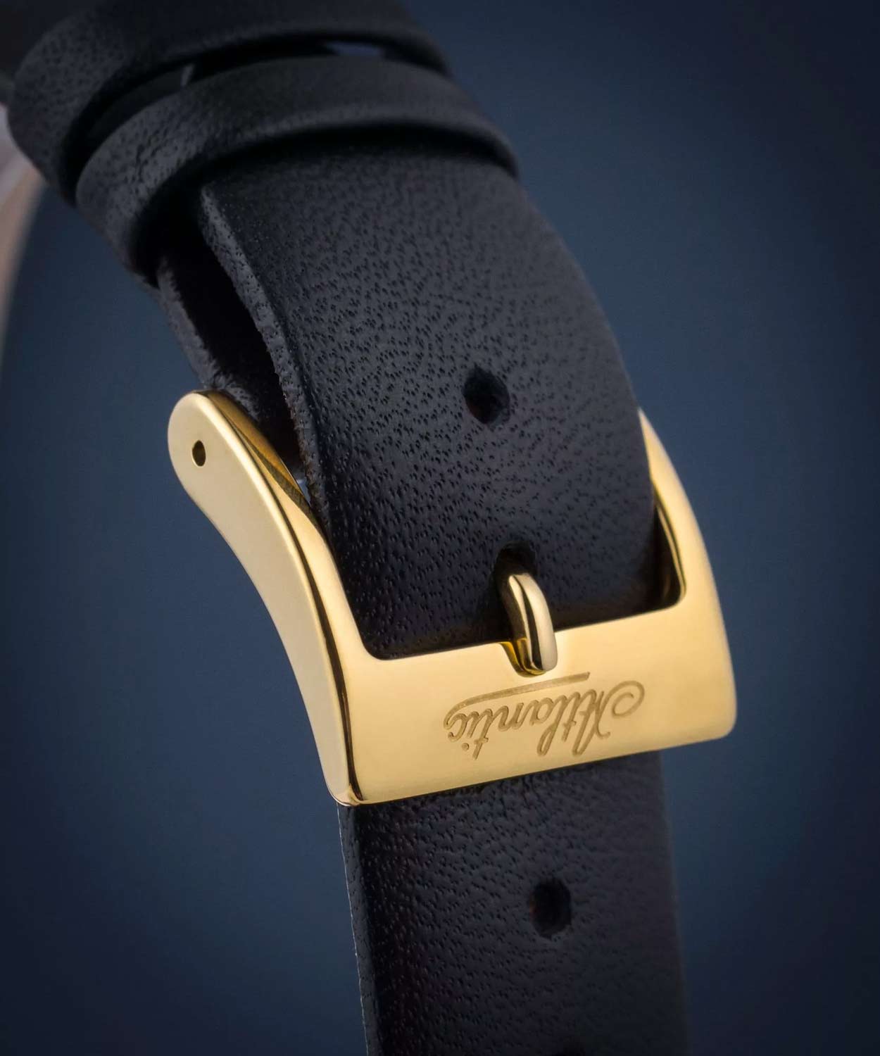 Женские швейцарские часы Atlantic Super De Luxe Precious Stones Rainbow Edition 29355.45.29LBK, кварцевый механизм с высокой точностью. Циферблат часов с сапфировым стекломСапфировое стеклоПрочный и надёжный материал из кристалла сапфира синтетического происхождения, характеризующийся особой твёрдостью и устойчивостью к царапинам и повреждениям., устойчивым к появлению царапин и обладающее высокой прозрачностью. Класс водозащиты: 30 метров, позволит защитить корпус от случайных брызг или капель дождя. Корпус часов изготовлен из нержавеющей стали с PVD-покрытиемPVDУльтратонкое покрытие наносится в технике вакуумного напыления, сочетает в себе нитрид титана особой прочности со слоем золота или оксида хрома. Несёт в себе декоративную или защитную функцию.. Кожаный ремешок на стандартной застёжке. Гильошированный циферблат с метками в виде точек украшен кристаллами. Окошко даты находится в положении 3 часа.