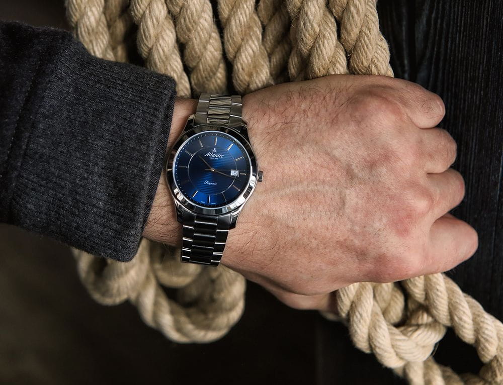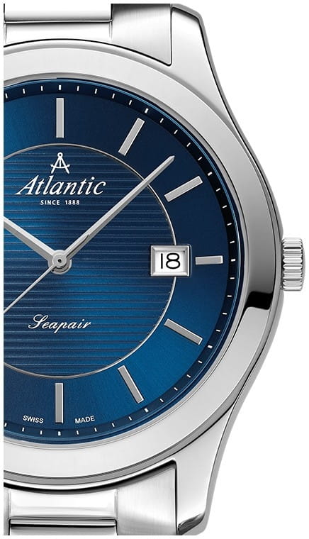 Мужские швейцарские часы Atlantic Seaport 60335.41.51, кварцевый механизм с высокой точностью.  Cапфировое стеклоСапфировое стеклоПрочный и надёжный материал из кристалла сапфира синтетического происхождения, характеризующийся особой твёрдостью и устойчивостью к царапинам и повреждениям. устойчивое к появлению царапин и обладающее высокой прозрачностью. Корпус и браслет часов изготовлены из нержавеющей стали. Окошко даты находится в положении 3 часов. Класс водозащиты: 50 метров, позволит защитить корпус от случайных брызг или капель дождя. Стальной браслет на раскладной застёжкеРаскладная застёжкаТакой тип застёжки используется только на браслетах из металла. Она никогда не раскрывается полностью, происходит разделение на 2 и более частей. Раскладывающая застёжка снизит вероятность потери часов к минимуму..
