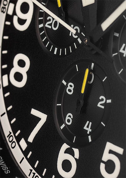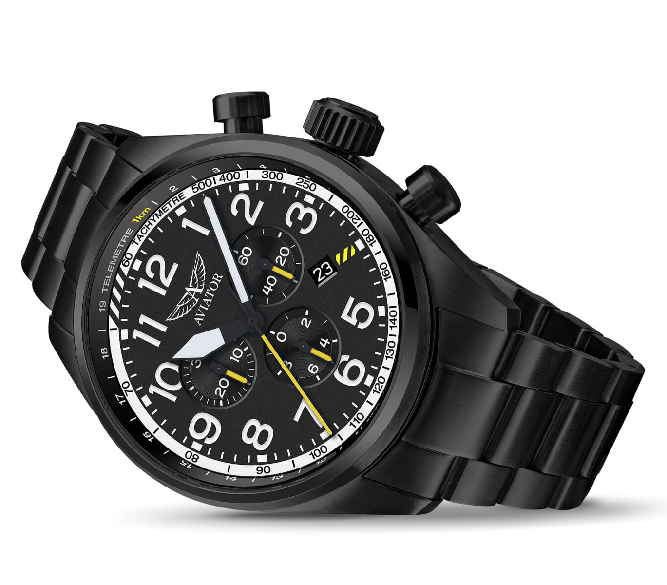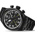 Aviator Airacobra P45 Chrono V.2.25.5.169.5 — швейцарские часы в духе пилотских инструментов, объединяющий точность, удобство и лаконичный дизайн. Диаметр корпуса — 45 мм, выполнен из нержавеющей стали 316L с PVD-покрытиемPVDУльтратонкое покрытие наносится в технике вакуумного напыления, сочетает в себе нитрид титана особой прочности со слоем золота или оксида хрома. Несёт в себе декоративную или защитную функцию., что подчёркивает техническую надёжность в образе часов. Циферблат оформлен в классическом aviator-стиле: крупные арабские цифры, широкие стрелки и чёткое деление минут позволяют считывать время мгновенно. Стрелки и метки покрыты люминесцентным покрытиемЛюминесцентное покрытиеПозволяет считывать показания времени в темноте. Производители наносят на стрелки, часовые индексы, безель или поверхность циферблата светонакопительный состав, дающий холодное свечение. Superluminova для отличной читаемости при слабом освещении. Циферблат защищён стойким сапфировым стекломСапфировое стеклоПрочный и надёжный материал из кристалла сапфира синтетического происхождения, характеризующийся особой твёрдостью и устойчивостью к царапинам и повреждениям. с антибликовым покрытиемАнтибликовое покрытиеСлой оксида металла в 0,13-0,3 микрон, благодаря которому стекло часов не бликует и не отражает свет. Антибликовое покрытие уменьшает отражение света в 10 раз, обеспечивая отличную читаемость показателей циферблата.. У модели присутствуют дата и точный откидной механизм завинчивающейся заводной головки и задней крышки, обеспечивающий надёжную водозащиту до 100 м и защиту от ударов. Внутри установлен швейцарский кварцевый механизм, который обеспечивает функции хронографаХронографФункция позволяет измерять отрезки времени с особой точностью: часы, минуты, секунды. Верным признаком хронографа является наличие на циферблате 3 дополнительных окошек-счётчиков.. Функции добавить (ADD) и разделить (SPLIT). Часы комплектуются браслетом из нержавеющей стали с PVD-покрытиемPVDУльтратонкое покрытие наносится в технике вакуумного напыления, сочетает в себе нитрид титана особой прочности со слоем золота или оксида хрома. Несёт в себе декоративную или защитную функцию. с удобной раскладной застёжкойРаскладная застёжкаТакой тип застёжки используется только на браслетах из металла. Она никогда не раскрывается полностью, происходит разделение на 2 и более частей. Раскладывающая застёжка снизит вероятность потери часов к минимуму., обеспечивающей надёжную фиксацию и комфорт при ежедневной носке. Эти изысканные часы так же обладают функциями тахиметраТахиметрРазмеченная шкала, располагается на ободке или безеле часов. Тахиметр позволяет рассчитать скорость на определённом участке пути, расстояние измеряется в километрах или милях., секундомераСекундомерСекундоме́р — прибор, способный измерять интервалы времени с точностью до долей секунды. и телеметра. Airacobra — это практичный и стильный инструмент для путешествий и активной повседневности, объединяющий авиационную эстетику, точный механизм и удобство.