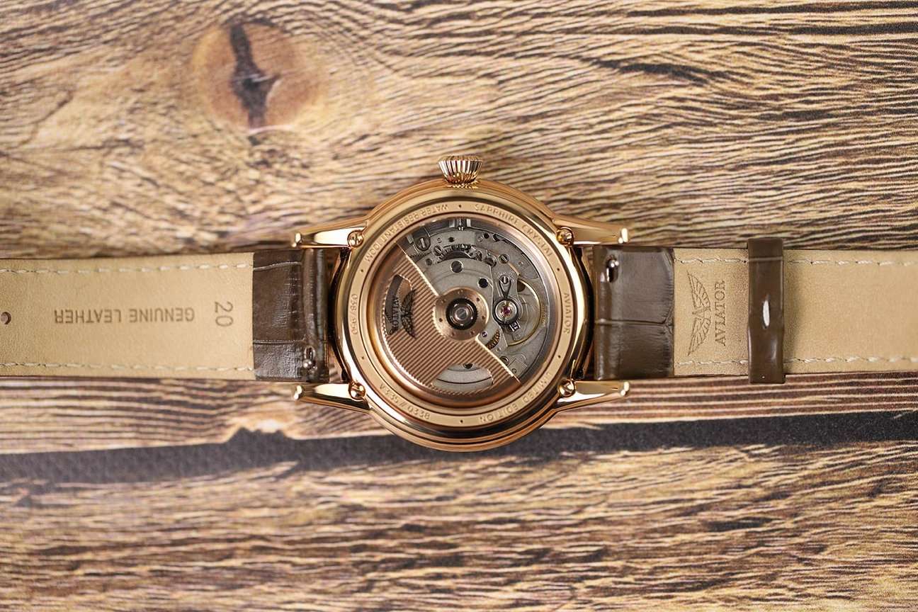 Aviator Douglas Day Date V.3.35.2.280.4 — швейцарские часы в классике авиадизайна, сочетающие безупречную читаемость и высокую надёжность. Лимитированная серия. Корпус диаметром 41,2 мм выполнен из нержавеющей стали 316L с PVD-покрытиемPVDУльтратонкое покрытие наносится в технике вакуумного напыления, сочетает в себе нитрид титана особой прочности со слоем золота или оксида хрома. Несёт в себе декоративную или защитную функцию. цвета розового золота. Накладные метки выполнены в виде римских цифр. Окошко даты находится в положении 6 часов. День недели находится в положении 12 часов. Часовые метки и стрелки покрыты люминесцентным покрытиемЛюминесцентное покрытиеПозволяет считывать показания времени в темноте. Производители наносят на стрелки, часовые индексы, безель или поверхность циферблата светонакопительный состав, дающий холодное свечение. Superluminova, позволяющим легко определять время даже в тёмное время суток. Поверхность защищена прочным сапфировым стекломСапфировое стеклоПрочный и надёжный материал из кристалла сапфира синтетического происхождения, характеризующийся особой твёрдостью и устойчивостью к царапинам и повреждениям. с антибликовым покрытием, устойчивым к царапинам. Сердце модели — швейцарский механизм Sellita SW 240-2, известный своей точностью и долговечностью. Водозащита 100 метров, позволит плавать, нырять и заниматься другими водными видами спорта. Завинчивающаяся головка и задняя крышка обеспечивают уверенную ударопрочностьУдаропрочный корпусМеханизм заключён в корпус, выполненный из современных материалов, устойчивых к ударам, механическим повреждениям и падению с высоты: инновационный пластик, карбон, нержавеющая сталь, титан. и надёжную защиту от влаги и пыли. В механизме 26 камней, запас хода до 41 час. Модель дополнена кожаным ремешком с выразительной текстурой и классическим стилем, закреплённым с помощью застёжке-бабочке с кнопкамиЗастёжка "бабочка"Такой вид застёжки дополняется предохранителями, помогающими избежать случайного раскрытия браслета. Обладают изящным исполнением. — для максимального комфорта и лёгкости в повседневном использовании. Модель вдохновлена американским пассажирским самолетом Douglas DC-3, который является одним из лучших самолетов за всю историю авиации. Aviator — это образец лётной точности, инженерной чёткости и сдержанной роскоши, идеально подходящий для тех, кто ценит функциональность и уверенность в каждом элементе.