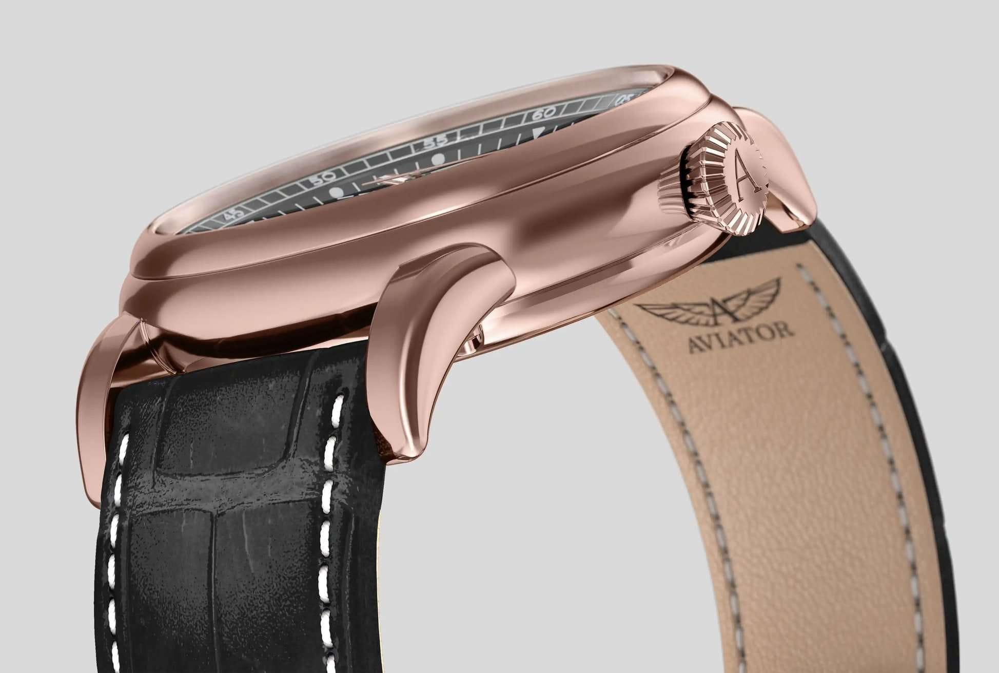 Aviator Douglas Day Date V.3.36.2.289.4 — швейцарские часы в классике авиадизайна, сочетающие безупречную читаемость и высокую надёжность. Лимитированная серия. Корпус диаметром 41 мм выполнен из нержавеющей стали 316L с PVD-покрытиемPVDУльтратонкое покрытие наносится в технике вакуумного напыления, сочетает в себе нитрид титана особой прочности со слоем золота или оксида хрома. Несёт в себе декоративную или защитную функцию. цвета розового золота. Накладные метки выполнены в виде арабских цифр. Окошко даты находится в положении 6 часов. День недели находится в положении 12 часов. Часовые метки и стрелки покрыты люминесцентным покрытиемЛюминесцентное покрытиеПозволяет считывать показания времени в темноте. Производители наносят на стрелки, часовые индексы, безель или поверхность циферблата светонакопительный состав, дающий холодное свечение. Superluminova, позволяющим легко определять время даже в тёмное время суток. Поверхность защищена прочным сапфировым стекломСапфировое стеклоПрочный и надёжный материал из кристалла сапфира синтетического происхождения, характеризующийся особой твёрдостью и устойчивостью к царапинам и повреждениям. с антибликовым покрытием, устойчивым к царапинам. Сердце модели — швейцарский механизм Sellita SW 240-2, известный своей точностью и долговечностью. Водозащита 100 метров, позволит плавать, нырять и заниматься другими водными видами спорта. Завинчивающаяся головка и задняя крышка обеспечивают уверенную ударопрочностьУдаропрочный корпусМеханизм заключён в корпус, выполненный из современных материалов, устойчивых к ударам, механическим повреждениям и падению с высоты: инновационный пластик, карбон, нержавеющая сталь, титан. и надёжную защиту от влаги и пыли. В механизме 26 камней, запас хода до 41 час. Модель дополнена кожаным ремешком с выразительной текстурой и классическим стилем, закреплённым с помощью застёжке-бабочке с кнопкамиЗастёжка "бабочка"Такой вид застёжки дополняется предохранителями, помогающими избежать случайного раскрытия браслета. Обладают изящным исполнением. — для максимального комфорта и лёгкости в повседневном использовании. Ротор механизма с заклепанными элементами и вырезанными окнами напоминает фюзеляж самолета. Aviator — это образец лётной точности, инженерной чёткости и сдержанной роскоши, идеально подходящий для тех, кто ценит функциональность и уверенность в каждом элементе.