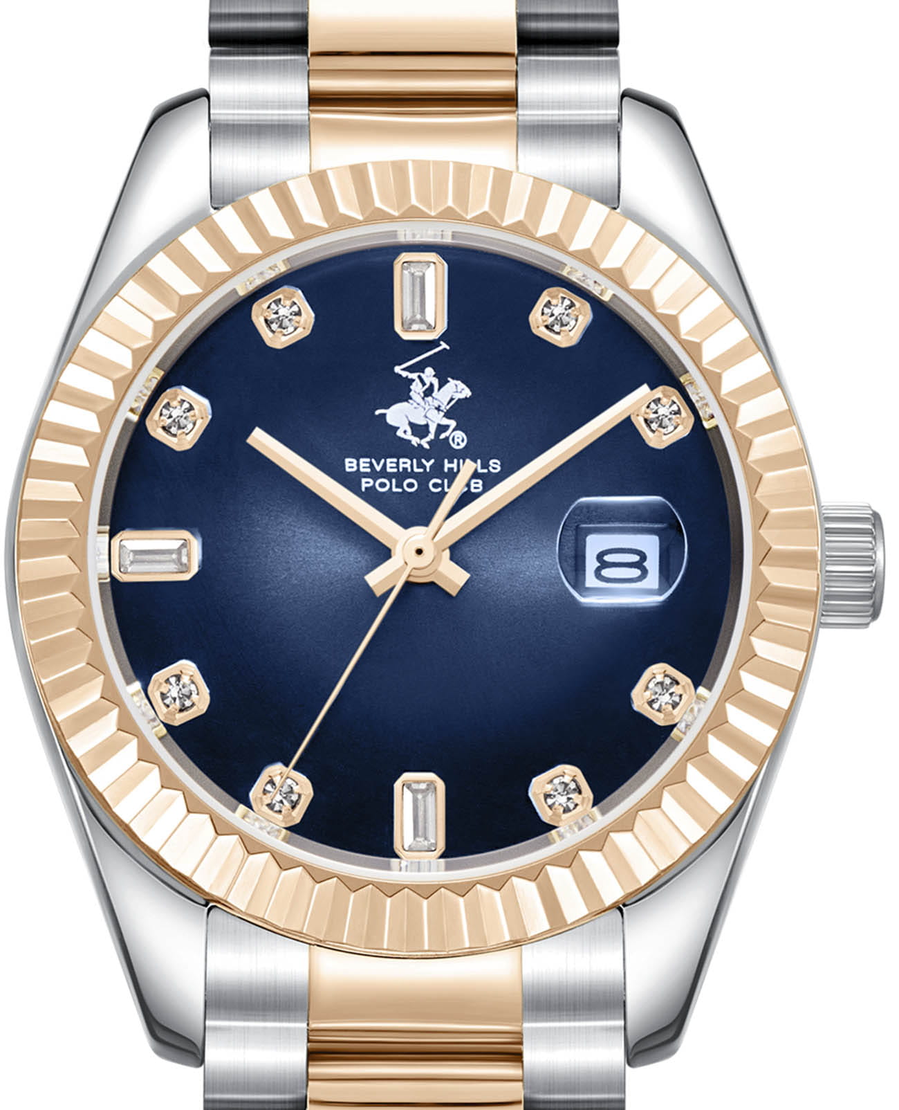 Американские женские часы Beverly Hills Polo Club BP3801X.590 - это стильный женский аксессуар, который сочетает элегантный дизайн и практичность. Корпус выполнен из нержавеющей стали серебристого цвета, диаметром 32 мм, что обеспечивает долговечность и утончённый внешний вид. Надежное минеральное стеклоМинеральное стеклоМинеральное стекло представляет собой искусственно выращенный минерал кварца. Такое стекло отличается особой устойчивостью к повреждениям и царапинам. Уступает по некоторым качествам сапфировому стеклу. с сапфировым покрытием защищает циферблат от царапин и обеспечивает долговечность. Неподвижный рифленый безельБезельВнешний ободок, закрепляющий стекло. В спортивных часах так называется поворотное кольцо с делениями на циферблате, выполняет роль таймера – замеряет отрезки времени на шкале. Неподвижный безель – элемент декора. Однонаправленно вращающийся безель на дайверских часах позволяет фиксировать моменты погружения и выныривания на поверхность. с IP-покрытиемIP-покрытиеМетод ионного напыления. Демонстрирует повышенную устойчивость к истиранию, окислению и химическим веществам. Под воздействием высокого давления и температуры около 1500°C молекулы металла надёжно соединяются с частицами корпуса часов. цвета золота. Метки инкрустированы цирконами. Модель оснащена кварцевым механизмом, обеспечивающим высокую точность хода. Стальной браслет с частичным IP-покрытиемIP-покрытиеМетод ионного напыления. Демонстрирует повышенную устойчивость к истиранию, окислению и химическим веществам. Под воздействием высокого давления и температуры около 1500°C молекулы металла надёжно соединяются с частицами корпуса часов. на раскладной застёжкеРаскладная застёжкаТакой тип застёжки используется только на браслетах из металла. Она никогда не раскрывается полностью, происходит разделение на 2 и более частей. Раскладывающая застёжка снизит вероятность потери часов к минимуму. обеспечивает комфортное ношение. Водозащита 30 метров позволит защитить корпус от случайных брызг или капель дождя. Эта модель – отличный выбор для тех, кто ищет сочетание стиля, качества и функциональности. Часы станут не только полезным аксессуаром, но и выразительным элементом вашего имиджа.