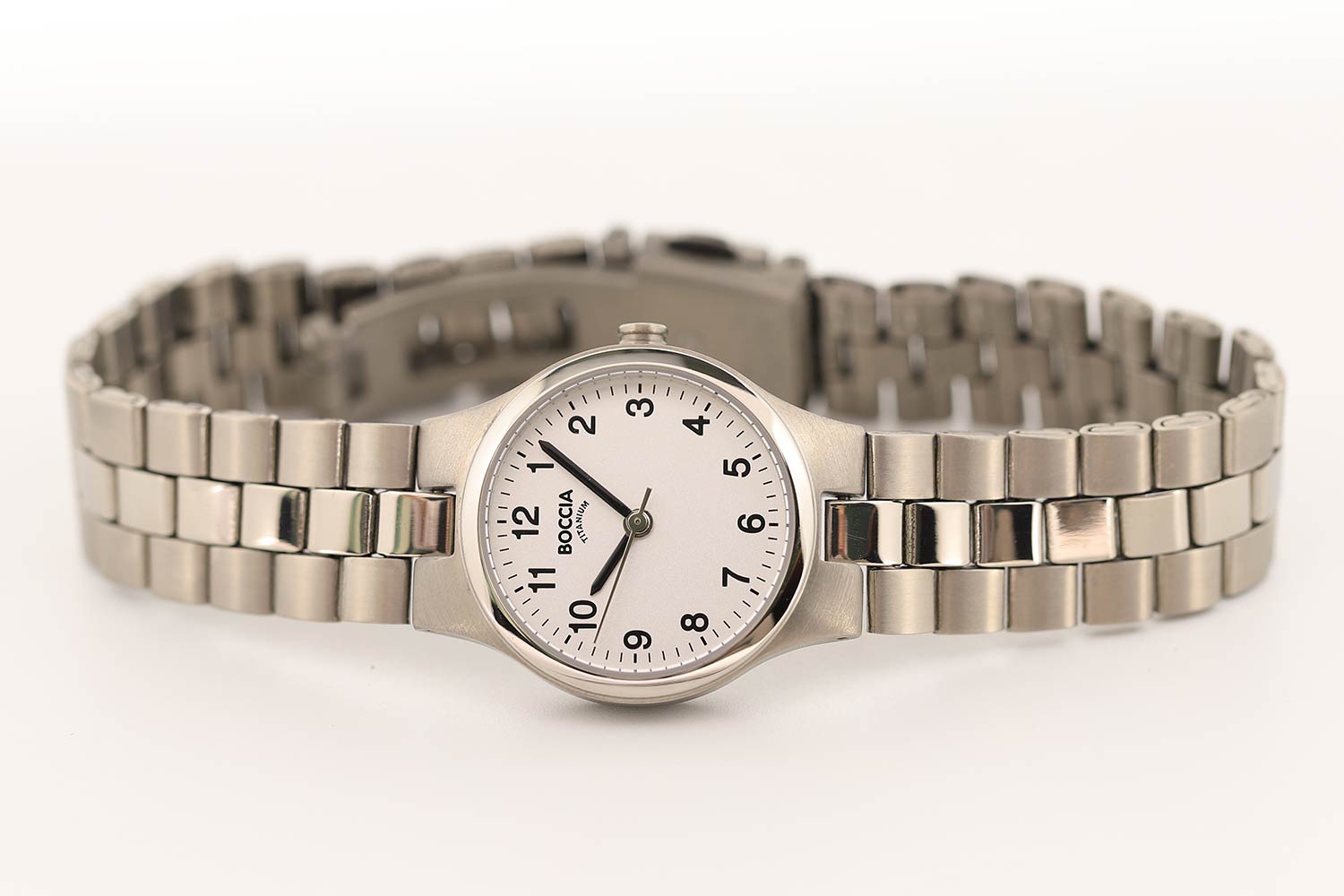 Женские наручные часы Boccia Titanium 3082-06 с надёжным кварцевым механизмом. Корпус часов изготовлен из титана. Титановый браслет на раскладной застёжкеРаскладная застёжкаТакой тип застёжки используется только на браслетах из металла. Она никогда не раскрывается полностью, происходит разделение на 2 и более частей. Раскладывающая застёжка снизит вероятность потери часов к минимуму.. Минеральное стеклоМинеральное стеклоМинеральное стекло представляет собой искусственно выращенный минерал кварца. Такое стекло отличается особой устойчивостью к повреждениям и царапинам. Уступает по некоторым качествам сапфировому стеклу. устойчивое к мелким механическим повреждениям. Класс водозащиты: 50 метров, позволит защитить корпус от случайных брызг или капель дождя.