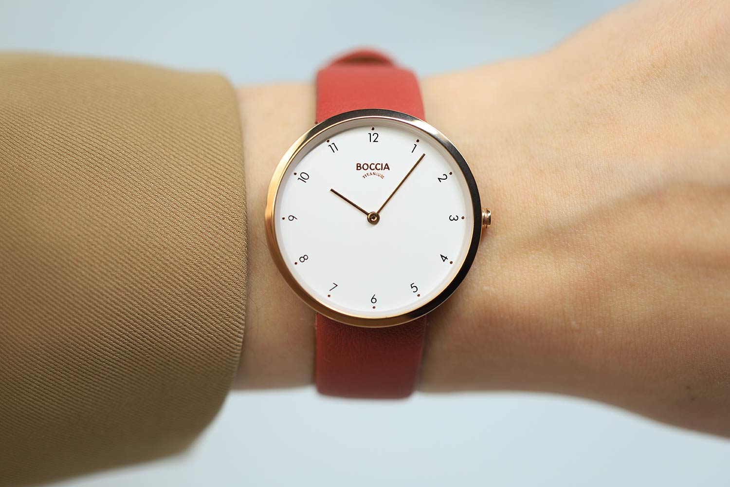 Женские наручные часы Boccia Titanium 3309-05 с надёжным кварцевым механизмом. Корпус часов изготовлен из титана с PVD-покрытиемPVDУльтратонкое покрытие наносится в технике вакуумного напыления, сочетает в себе нитрид титана особой прочности со слоем золота или оксида хрома. Несёт в себе декоративную или защитную функцию.. Минеральное стеклоМинеральное стеклоМинеральное стекло представляет собой искусственно выращенный минерал кварца. Такое стекло отличается особой устойчивостью к повреждениям и царапинам. Уступает по некоторым качествам сапфировому стеклу. устойчивое к мелким механическим повреждениям. Класс водозащиты: 30 метров, позволит защитить корпус от случайных брызг или капель дождя. Кожаный ремешок на стандартной застёжке.