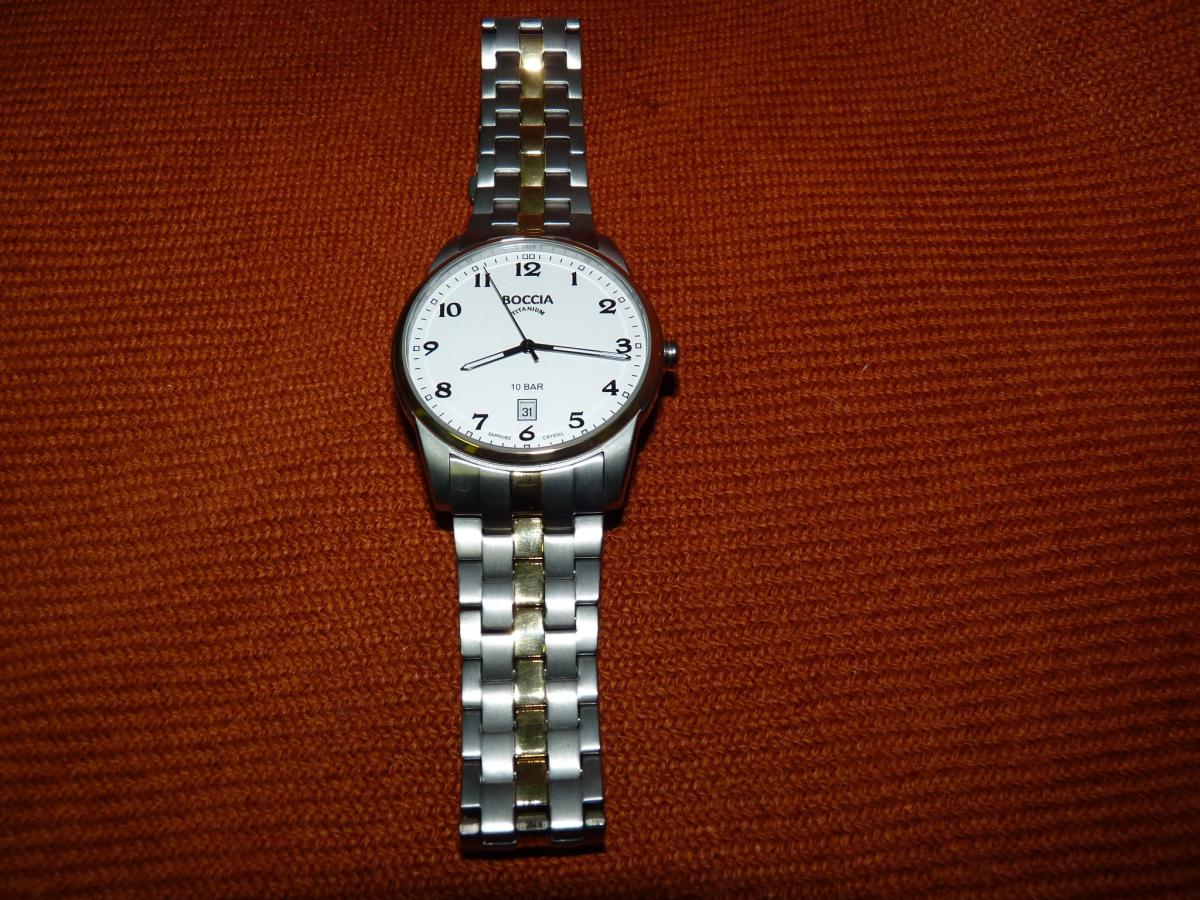Мужские немецкие титановые часы Boccia Titanium 3632-03, кварцевый механизм с высокой точностью. Сапфировое стеклоСапфировое стеклоПрочный и надёжный материал из кристалла сапфира синтетического происхождения, характеризующийся особой твёрдостью и устойчивостью к царапинам и повреждениям. устойчивое к появлению царапин, обладающее высокой прозрачностью. Корпус изготовлен из титана. Стрелки и метки с люминесцентным покрытиемЛюминесцентное покрытиеПозволяет считывать показания времени в темноте. Производители наносят на стрелки, часовые индексы, безель или поверхность циферблата светонакопительный состав, дающий холодное свечение.. Окошко даты в положении 6 часов. Класс водозащиты: 100 метров, позволит плавать, нырять и заниматься другими водными видами спорта. Браслет из титана с частичным PVD-покрытиемPVDУльтратонкое покрытие наносится в технике вакуумного напыления, сочетает в себе нитрид титана особой прочности со слоем золота или оксида хрома. Несёт в себе декоративную или защитную функцию. на раскладной застёжкеРаскладная застёжкаТакой тип застёжки используется только на браслетах из металла. Она никогда не раскрывается полностью, происходит разделение на 2 и более частей. Раскладывающая застёжка снизит вероятность потери часов к минимуму..