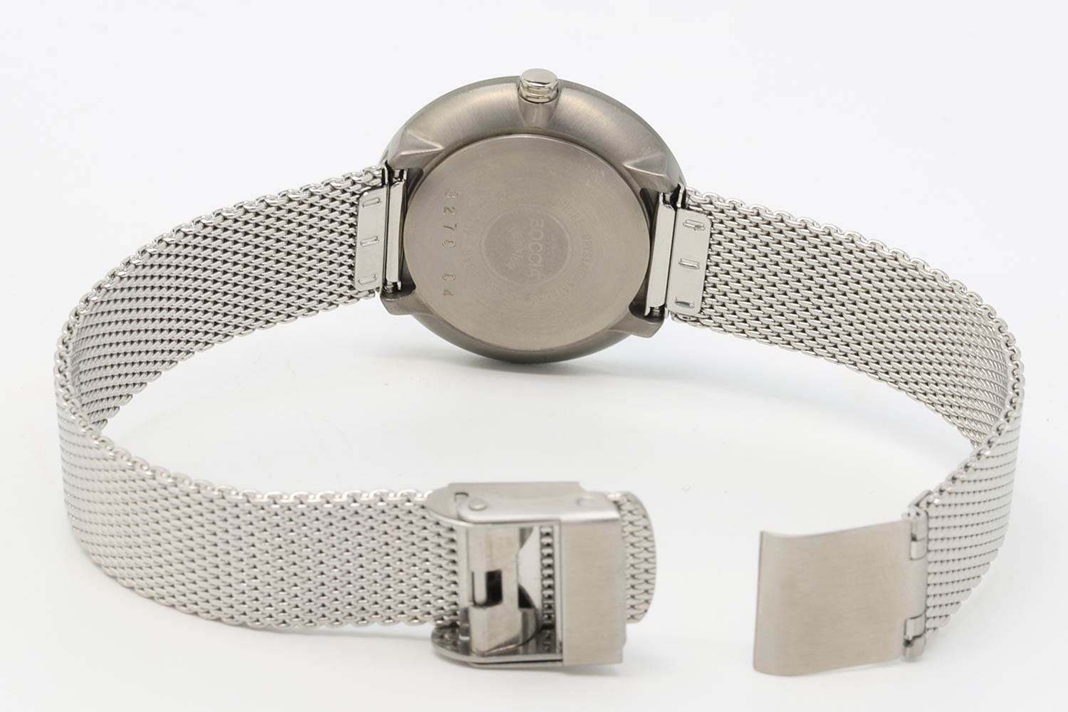 Женские наручные часы Boccia Titanium 3279-04 с надёжным кварцевым механизмом. Корпус часов изготовлен из титана. Сапфировое стеклоСапфировое стеклоПрочный и надёжный материал из кристалла сапфира синтетического происхождения, характеризующийся особой твёрдостью и устойчивостью к царапинам и повреждениям. устойчивое к мелким механическим повреждениям. Класс водозащиты: 30 метров, позволит защитить корпус от случайных брызг или капель дождя. Стальной браслет миланского плетения на раскладном замкеРаскладной замокДанный вариант застежки используется только на часах с металлическим браслетом. Отличительная особенность такого крепления в том, что длина браслета становится универсальной и вы можете самостоятельно отрегулировать нужный вам размер – застежка просто двигается по браслету часов.