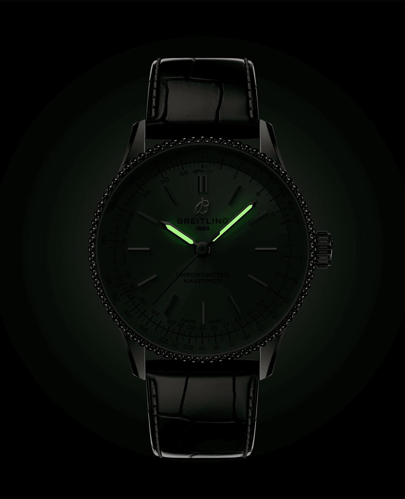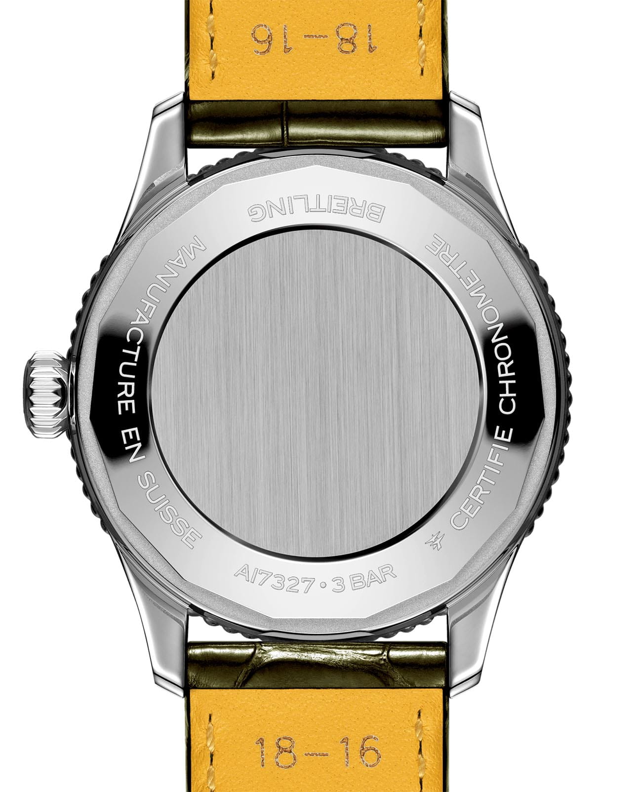 Швейцарские унисекс часы-хронометр Breitling Navitimer Automatic 36 A17327361L1P1, механический механизм (автоматический калибр) с высокой точностью. Сапфировое стеклоСапфировое стеклоПрочный и надёжный материал из кристалла сапфира синтетического происхождения, характеризующийся особой твёрдостью и устойчивостью к царапинам и повреждениям. устойчивое к появлению царапин, обладающее высокой прозрачностью. Класс водозащиты: 30 метров, позволит защитить корпус от случайных брызг или капель дождя. Корпус часов изготовлен из нержавеющей стали. Ремешок из кожи аллигатора с раскладной застёжкойРаскладная застёжкаТакой тип застёжки используется только на браслетах из металла. Она никогда не раскрывается полностью, происходит разделение на 2 и более частей. Раскладывающая застёжка снизит вероятность потери часов к минимуму.. Часы оснащены логарифмической линейкой. Стрелки с люминесцентным покрытиемЛюминесцентное покрытиеПозволяет считывать показания времени в темноте. Производители наносят на стрелки, часовые индексы, безель или поверхность циферблата светонакопительный состав, дающий холодное свечение..