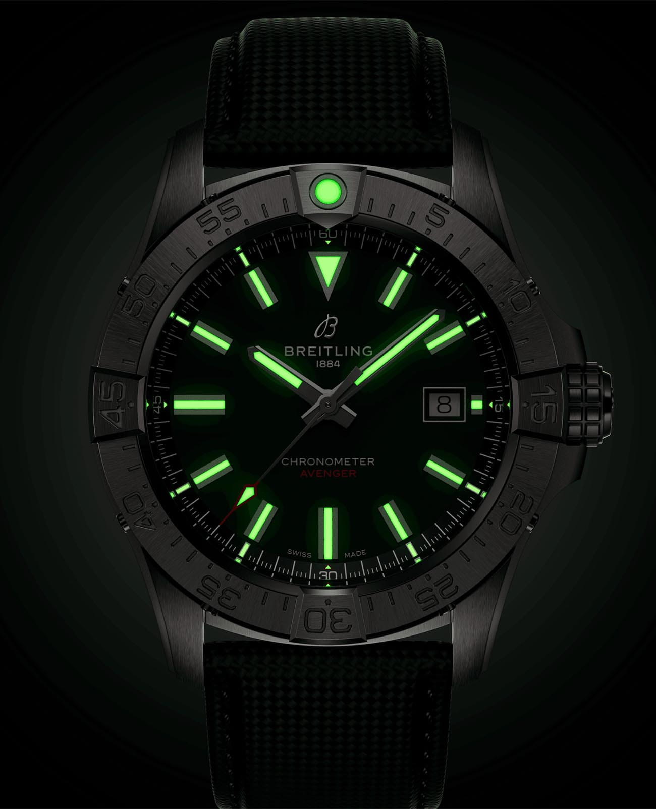 Мужские наручные часы Breitling Avenger Automatic 42 A17328101L1X1 с надёжным автоматическим механизмом. Сапфировое стеклоСапфировое стеклоПрочный и надёжный материал из кристалла сапфира синтетического происхождения, характеризующийся особой твёрдостью и устойчивостью к царапинам и повреждениям. повышенной прозрачности, устойчивое к мелким механическим повреждениям. Вращающийся безельБезельВнешний ободок, закрепляющий стекло. В спортивных часах так называется поворотное кольцо с делениями на циферблате, выполняет роль таймера – замеряет отрезки времени на шкале. Неподвижный безель – элемент декора. Однонаправленно вращающийся безель на дайверских часах позволяет фиксировать моменты погружения и выныривания на поверхность.. Окошко даты находится в положении 3 часа. Стрелки и метки с люминесцентным покрытиемЛюминесцентное покрытиеПозволяет считывать показания времени в темноте. Производители наносят на стрелки, часовые индексы, безель или поверхность циферблата светонакопительный состав, дающий холодное свечение.. Кожаный ремешок с на стандартной застёжке. Класс водозащиты: 300 метров, позволит плавать, нырять и заниматься другими водными видами спорта.