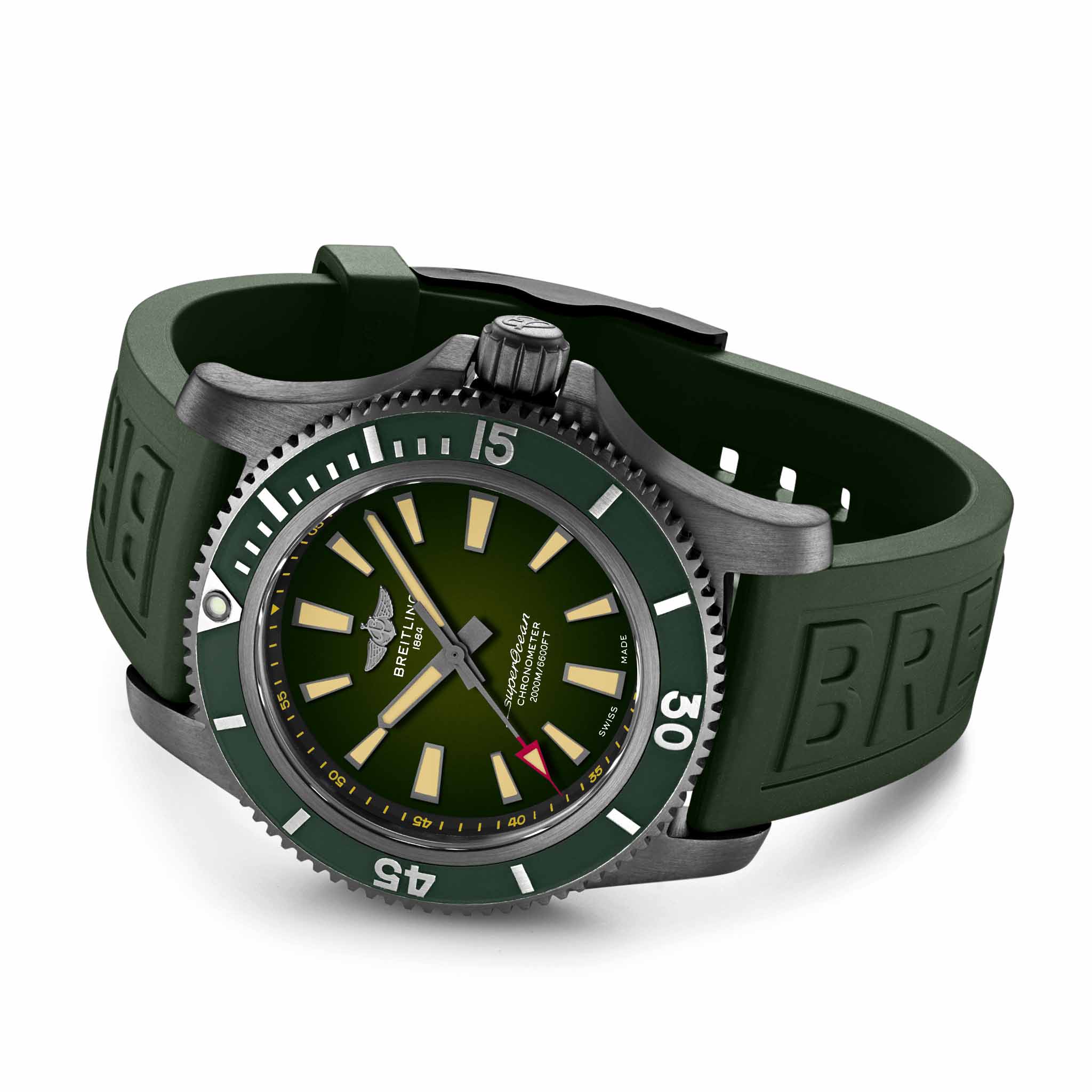 Лимитированные мужские водонепроницаемые швейцарские часы c углеродным покрытием Breitling Superocean Automatic 46 Black Steel M173681A1L1S1, механический механизм (автоматический калибр) с высокой точностью. Сапфировое стеклоСапфировое стеклоПрочный и надёжный материал из кристалла сапфира синтетического происхождения, характеризующийся особой твёрдостью и устойчивостью к царапинам и повреждениям. устойчивое к появлению царапин, обладающее высокой прозрачностью. Класс водозащиты: 2000 метров, позволит плавать, нырять и заниматься другими водными видами спорта. Корпус часов изготовлен из стали с DLC-покрытиемDLC-покрытиеDiamond like carbon - одно из лучших видов покрытия, представляющее собой углерод с алмазными свойствами. На поверхность материала наносятся распавшиеся молекулы углерода, превращающиеся в плёнку из алмазоподобных связей, которая перенимает твёрдость алмаза.. Силиконовый ремешок с раскладной застёжкойРаскладная застёжкаТакой тип застёжки используется только на браслетах из металла. Она никогда не раскрывается полностью, происходит разделение на 2 и более частей. Раскладывающая застёжка снизит вероятность потери часов к минимуму.. Стрелки и метки с люминесцентным покрытиемЛюминесцентное покрытиеПозволяет считывать показания времени в темноте. Производители наносят на стрелки, часовые индексы, безель или поверхность циферблата светонакопительный состав, дающий холодное свечение.. Широкие стрелки и индексы с люминесцентным покрытиемЛюминесцентное покрытиеПозволяет считывать показания времени в темноте. Производители наносят на стрелки, часовые индексы, безель или поверхность циферблата светонакопительный состав, дающий холодное свечение. обеспечивают легкую читаемость под водой. Вращающийся стальной безельБезельВнешний ободок, закрепляющий стекло. В спортивных часах так называется поворотное кольцо с делениями на циферблате, выполняет роль таймера – замеряет отрезки времени на шкале. Неподвижный безель – элемент декора. Однонаправленно вращающийся безель на дайверских часах позволяет фиксировать моменты погружения и выныривания на поверхность. с люминесцентным покрытиемЛюминесцентное покрытиеПозволяет считывать показания времени в темноте. Производители наносят на стрелки, часовые индексы, безель или поверхность циферблата светонакопительный состав, дающий холодное свечение. Superluminova из нержавеющей стали и керамики, защищенный от царапин, никогда не изнашивается и не выцветает. Смелый Superocean Automatic 46 не только готов к испытаниям на морских глубинах (до 200 бар / 2000 метров), но и привлечет тех, чьи приключения происходят немного ближе к берегу. Это издание ограничено тиражом в 200 экземпляров.