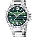 Женские кварцевые часы Candino — это сочетание элегантности и швейцарского качества. Корпус диаметром 34 мм и толщиной 8,25 мм выполнен из нержавеющей стали. Циферблат зелёного цвета оформлен индексами в виде штрихов и украшен циркониями, придающими изделию роскошный вид. Окошко даты расположено в положении 3 часов. Циферблат защищён сапфировым стекломСапфировое стеклоПрочный и надёжный материал из кристалла сапфира синтетического происхождения, характеризующийся особой твёрдостью и устойчивостью к царапинам и повреждениям., устойчивым к царапинам. Механизм — кварцевый произведённый в Швейцарии. Часы оснащены стальным браслетом с раскладной застёжкойРаскладная застёжкаТакой тип застёжки используется только на браслетах из металла. Она никогда не раскрывается полностью, происходит разделение на 2 и более частей. Раскладывающая застёжка снизит вероятность потери часов к минимуму.. Водонепроницаемость 50 м позволяет использовать часы в повседневных условиях. Гарантия — 2 года. Идеальный выбор для тех, кто ценит стиль, точность и надёжность.