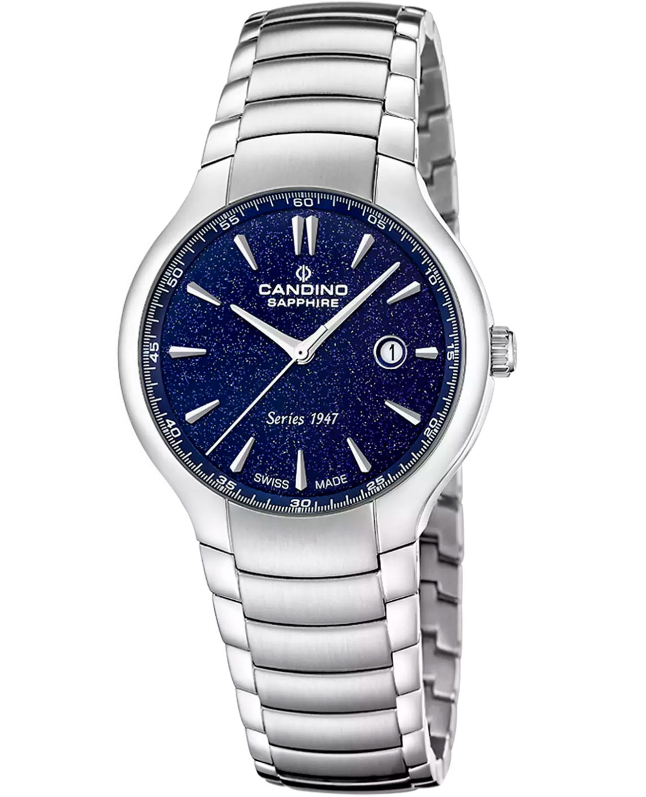Женские кварцевые часы Candino — это сочетание элегантности и швейцарского качества. Корпус диаметром 34 мм и толщиной 8,6 мм выполнен из нержавеющей стали 316L. Циферблат синего цвета оформлен индексами, придающими изделию изысканность. Окошко даты расположено в положении 3 часов. Циферблат защищён сапфировым стекломСапфировое стеклоПрочный и надёжный материал из кристалла сапфира синтетического происхождения, характеризующийся особой твёрдостью и устойчивостью к царапинам и повреждениям., устойчивым к царапинам. Механизм — кварцевый, произведённый в Швейцарии. Часы оснащены стальным браслетом на застёжке «бабочка» с кнопкамиЗастёжка "бабочка"Такой вид застёжки дополняется предохранителями, помогающими избежать случайного раскрытия браслета. Обладают изящным исполнением. . Водонепроницаемость 100 м позволяет использовать часы для плавания и повседневного ношения. Гарантия — 2 года. Идеальный выбор для тех, кто ценит стиль, точность и надёжность.