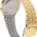 Наручные часы имеют ударопрочный корпусУдаропрочный корпусМеханизм заключён в корпус, выполненный из современных материалов, устойчивых к ударам, механическим повреждениям и падению с высоты: инновационный пластик, карбон, нержавеющая сталь, титан. 8-угольной формы, устойчивый к царапинам, падению, механическим повреждениям. Дополнительную защиту обеспечивает IP-покрытиеIP-покрытиеМетод ионного напыления. Демонстрирует повышенную устойчивость к истиранию, окислению и химическим веществам. Под воздействием высокого давления и температуры около 1500°C молекулы металла надёжно соединяются с частицами корпуса часов. цвета жёлтого золота. Пластиковое стекло отличается прочностью. Кварцевый механизм работает от аккумулятора, срок службы которого составляет 7 лет. Светодиодная микроподсветкаСветодиодная подсветкаСветодиодная или LED-подсветка обеспечивает появление яркого холодного свечения за счёт LED-элементов - маленьких лампочек. Они потребляют минимальное количество энергии, чаще всего можно встретить 1 светодиод, в нижней части циферблата.. Будильник с ежечасным сигналом, секундомер, автоматический календарь. Браслет из нержавеющей стали 316L. Габариты: 33,2 x 36,8 x 8,2 мм.