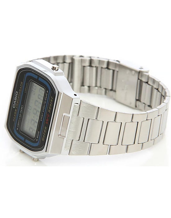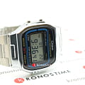 Наручные часы из прошлого вернулись в современной интерпретации. Надёжный корпус выполнен из полимерного пластика, стойко противостоящего ударам и повреждениям, для браслета с регулируемым креплением была выбрана нержавеющая сталь 316L. Электронная модель в серебристом цвете оснащена полезным функционалом: будильник, автоматический календарь, секундомер. Водостойкость 30 метров. Яркая подсветка экрана. Габариты: 36,3 x 38,6 x 9,6 мм.