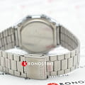Наручные часы из прошлого вернулись в современной интерпретации. Надёжный корпус выполнен из полимерного пластика, стойко противостоящего ударам и повреждениям, для браслета с регулируемым креплением была выбрана нержавеющая сталь 316L. Электронная модель в серебристом цвете оснащена полезным функционалом: будильник, автоматический календарь, секундомер. Водостойкость 30 метров. Габариты: 36,3 x 38,6 x 9,6 мм.