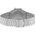 Стильные мужские наручные часы с будильником. Корпус - Пластиковый; Стекло - Пластик; Водозащита - 30 м. (WR 30); Материал ремешка - Нержавеющая сталь; Цвет ремешка - Серебристый; Цвет циферблата - Lcd.