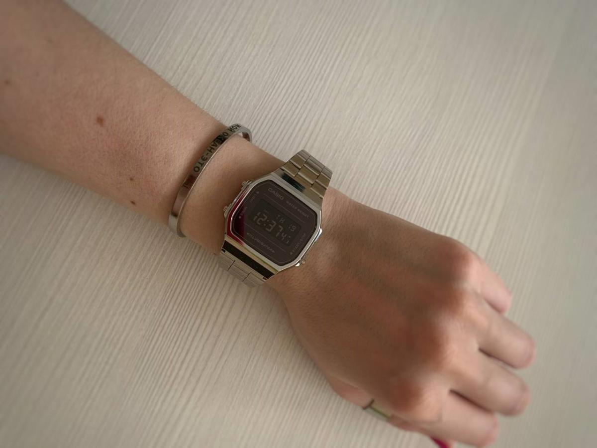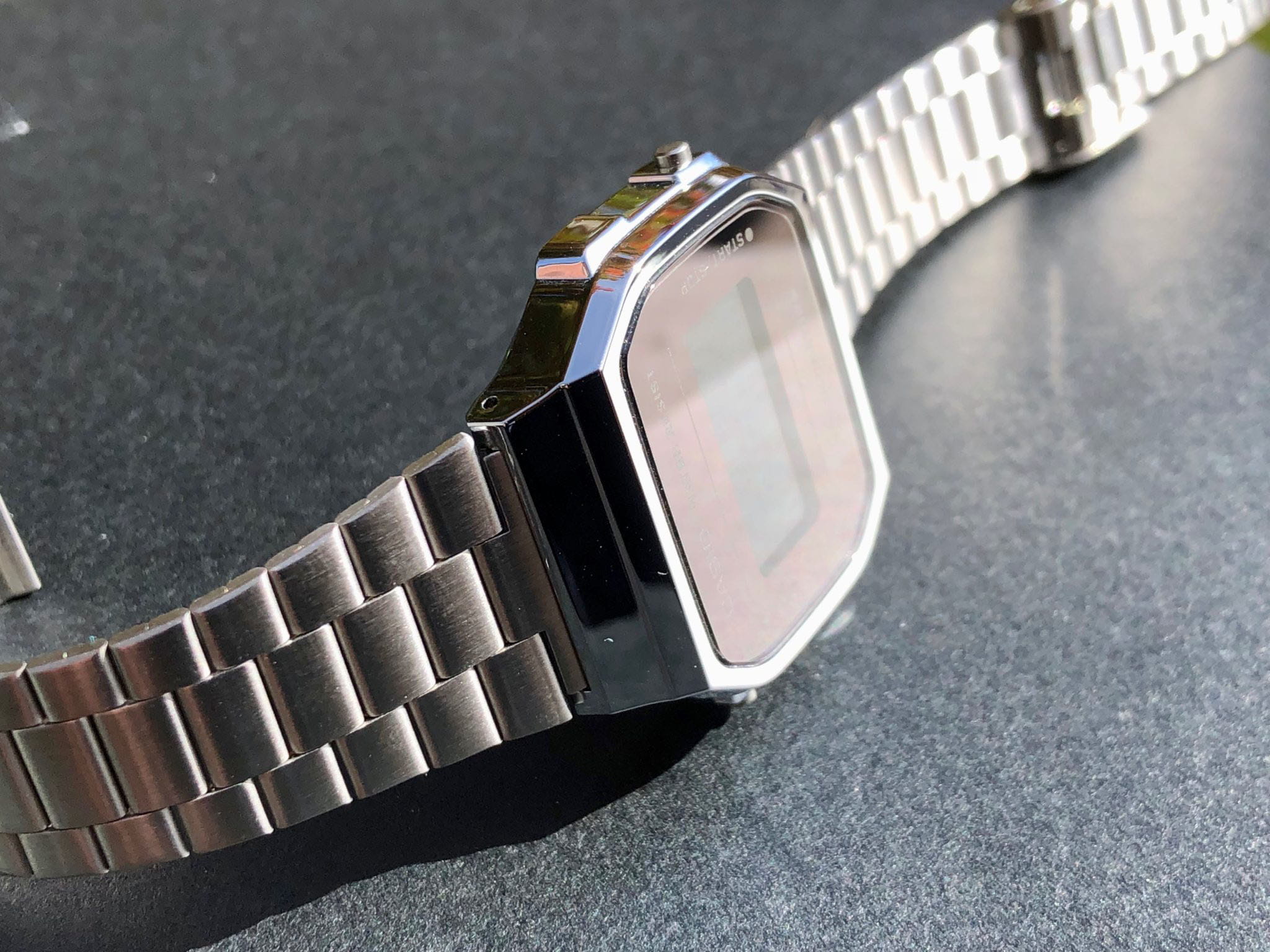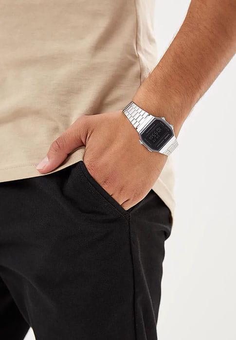 Корпус из прочного полимерного пластика имеет легендарную 8-угольную форму, компактный аксессуар одинаково хорошо смотрится как с офисной рубашкой, так и с повседневной футболкой. Электронный дисплей имеет подсветку, его надёжную защиту от повреждений обеспечивает минеральное стекло. Браслет из нержавеющей стали 316L на долгие годы сохранит первоначальный вид. Будильник, автоматический календарь. Габариты: 38,6 x 36,3 x 9,6 мм.