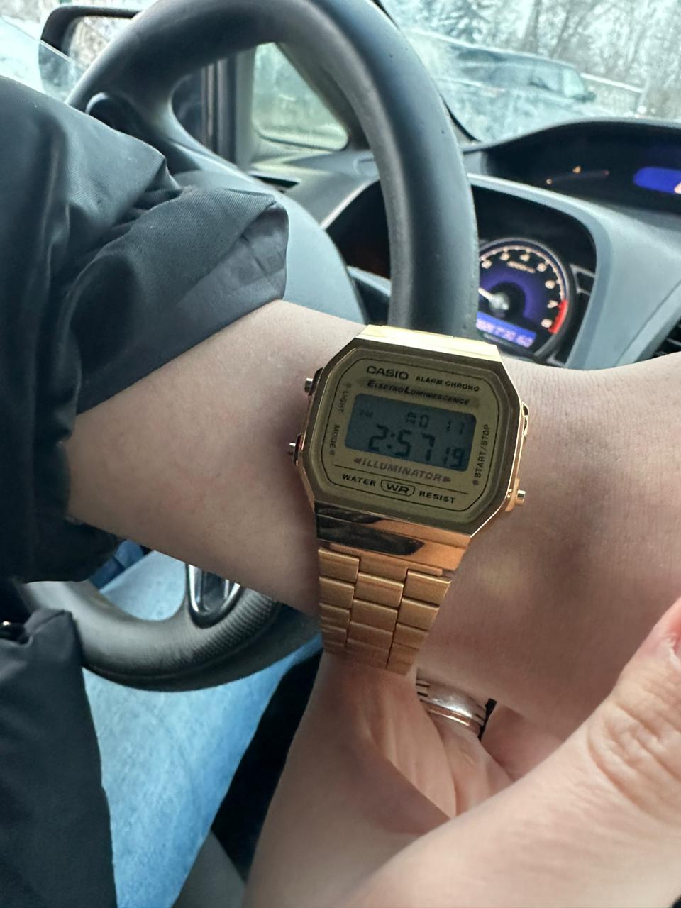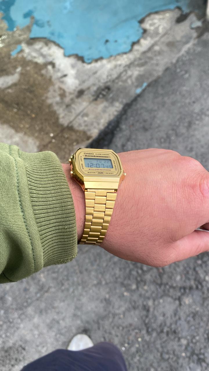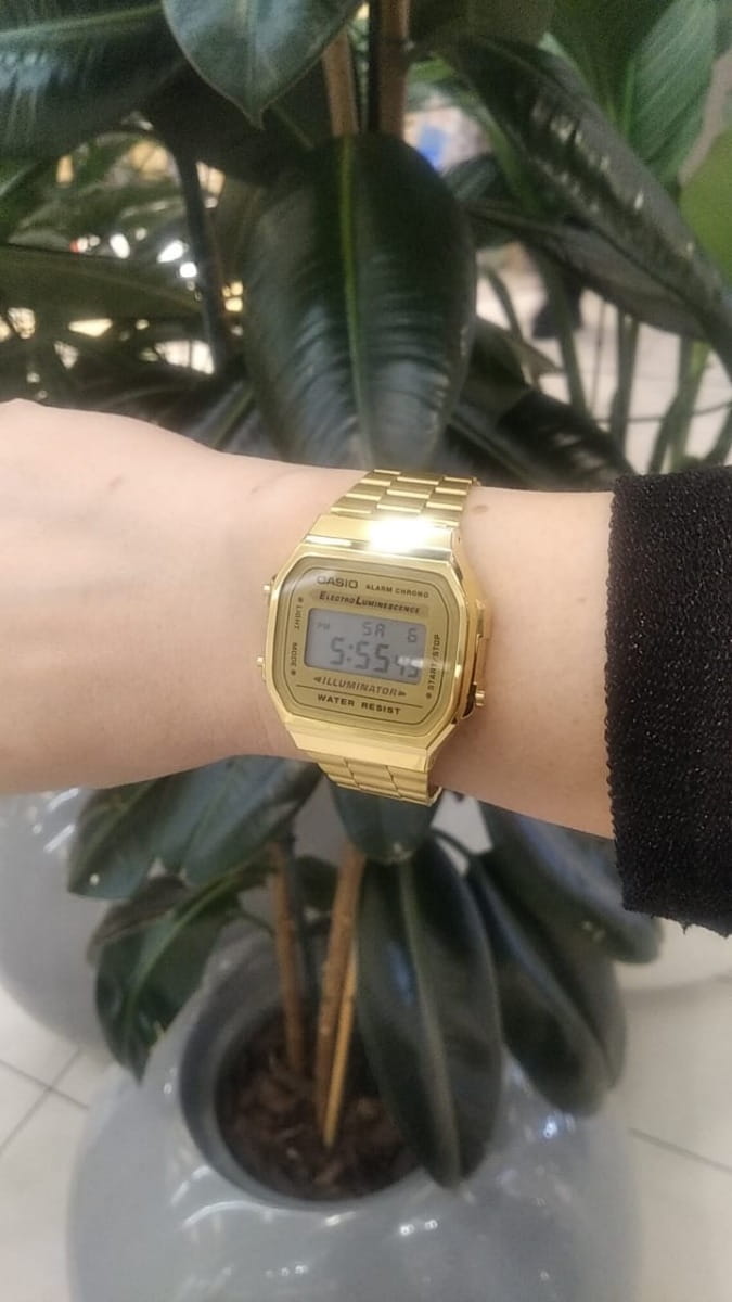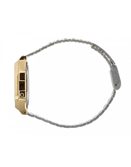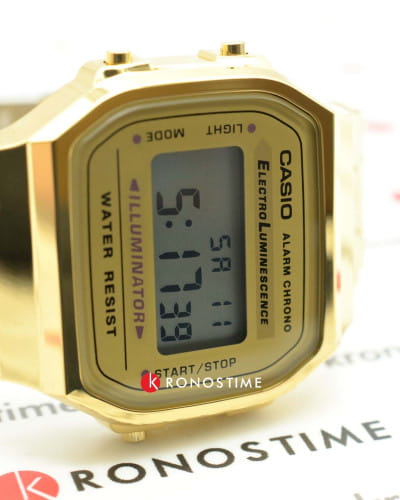 Брендовый аксессуар в золотом цвете имеет IP-покрытиеIP-покрытиеМетод ионного напыления. Демонстрирует повышенную устойчивость к истиранию, окислению и химическим веществам. Под воздействием высокого давления и температуры около 1500°C молекулы металла надёжно соединяются с частицами корпуса часов. стального браслета, защищающее от царапин и изнашивания, а также выполняющее декоративное предназначение. Высокоточный кварцевый механизм. Яркая электролюминесцентная подсветка. Противоударный корпусУдаропрочный корпусМеханизм заключён в корпус, выполненный из современных материалов, устойчивых к ударам, механическим повреждениям и падению с высоты: инновационный пластик, карбон, нержавеющая сталь, титан. 8-угольной формы из надёжного пластика. Удобная застёжка расстёгивается одним касанием. Будильник, автоматический календарь. Габариты: 36,3 x 38,6 x 9,6 мм.