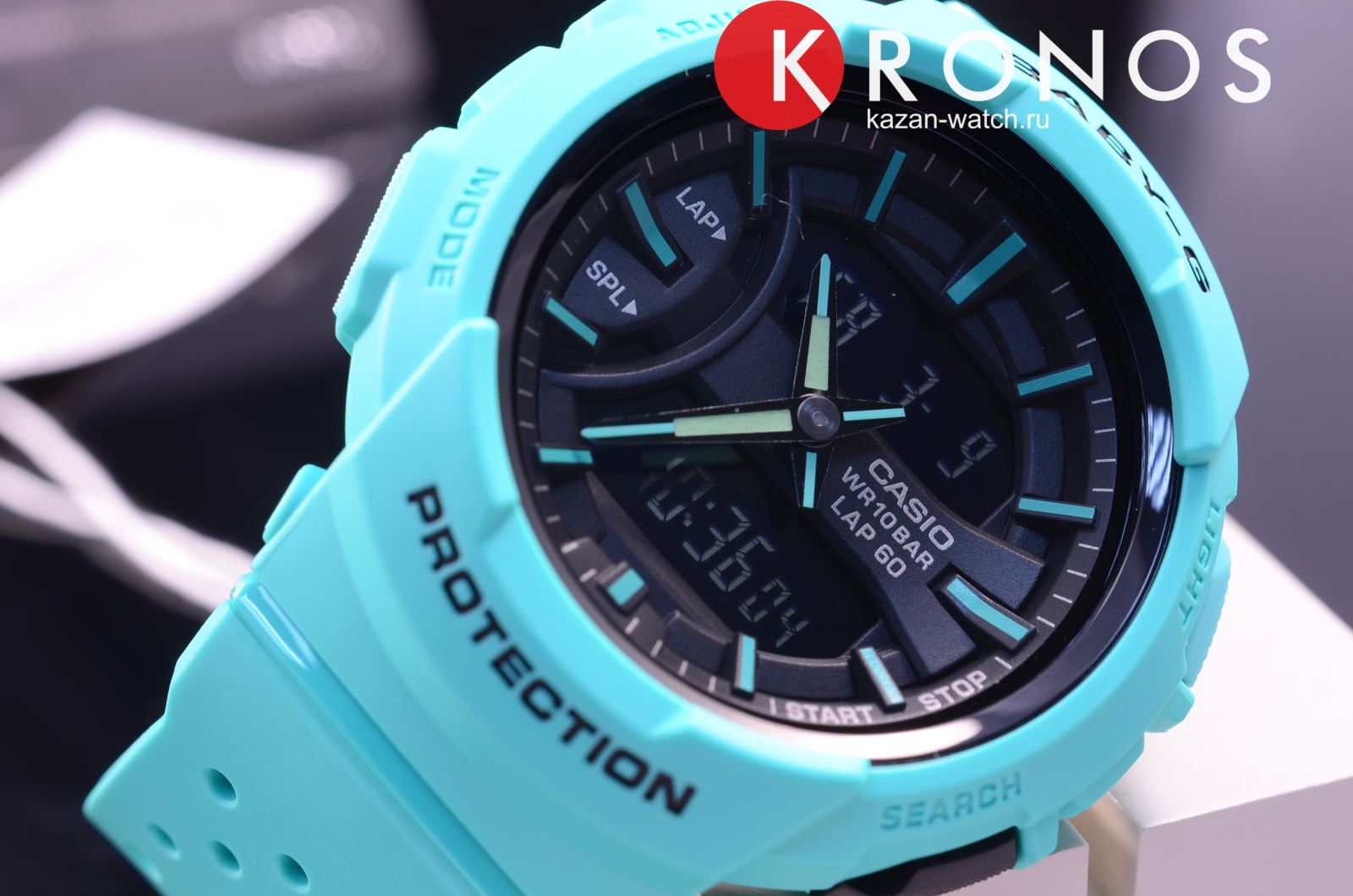 Модель в ярко-бирюзовом исполнении является полезным аксессуаром для любительниц бега, благодаря которому можно в разы повысить эффективность тренировок. Функция Lap Memory 60™ позволяет фиксировать и хранить информацию о дате пробежек, показатели времени круга. Память рассчитана на 60 этапов. Японский кварцевый механизм. Батарейка с 3-летним сроком службы. Минеральное стекло. Полимерный ударопрочный корпусУдаропрочный корпусМеханизм заключён в корпус, выполненный из современных материалов, устойчивых к ударам, механическим повреждениям и падению с высоты: инновационный пластик, карбон, нержавеющая сталь, титан.. Циферблат со светодиодной подсветкойСветодиодная подсветкаСветодиодная или LED-подсветка обеспечивает появление яркого холодного свечения за счёт LED-элементов - маленьких лампочек. Они потребляют минимальное количество энергии, чаще всего можно встретить 1 светодиод, в нижней части циферблата.. Будильник с функцией «подремать». ХронографХронографФункция позволяет измерять отрезки времени с особой точностью: часы, минуты, секунды. Верным признаком хронографа является наличие на циферблате 3 дополнительных окошек-счётчиков., секундомер, таймер, календарь. Габариты: 46,4 x 42,6 x 15,3 мм.