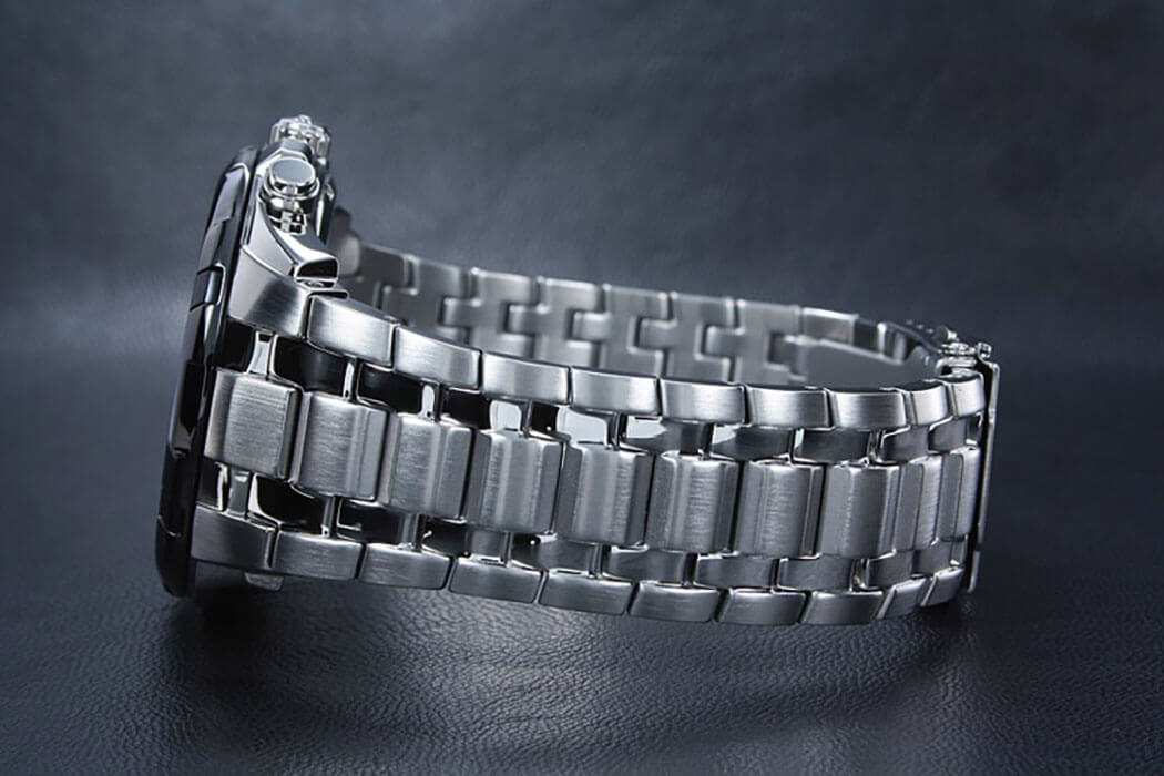 Стильная модель на вашем запястье будет привлекать внимание окружающих, оригинальное исполнение циферблата в сочетании с безупречным качеством используемых материалов даёт ошеломительный эффект. За точность хода +/- 30 секунд в месяц отвечает кварцевый механизм Miyota, батарейка рассчитана на 2 года работы. Минеральное стекло противостоит образованию царапин. Ударопрочный корпусУдаропрочный корпусМеханизм заключён в корпус, выполненный из современных материалов, устойчивых к ударам, механическим повреждениям и падению с высоты: инновационный пластик, карбон, нержавеющая сталь, титан. из нержавеющей стали 316L. Люминесцентная подсветкаЛюминесцентное покрытиеПозволяет считывать показания времени в темноте. Производители наносят на стрелки, часовые индексы, безель или поверхность циферблата светонакопительный состав, дающий холодное свечение.. Стальной браслет с предохранительной застёжкой. безельБезельВнешний ободок, закрепляющий стекло. В спортивных часах так называется поворотное кольцо с делениями на циферблате, выполняет роль таймера – замеряет отрезки времени на шкале. Неподвижный безель – элемент декора. Однонаправленно вращающийся безель на дайверских часах позволяет фиксировать моменты погружения и выныривания на поверхность. с IP-финишемIP-покрытиеМетод ионного напыления. Демонстрирует повышенную устойчивость к истиранию, окислению и химическим веществам. Под воздействием высокого давления и температуры около 1500°C молекулы металла надёжно соединяются с частицами корпуса часов.. Секундомер, хронографХронографФункция позволяет измерять отрезки времени с особой точностью: часы, минуты, секунды. Верным признаком хронографа является наличие на циферблате 3 дополнительных окошек-счётчиков., календарь, тахиметрТахиметрРазмеченная шкала, располагается на ободке или безеле часов. Тахиметр позволяет рассчитать скорость на определённом участке пути, расстояние измеряется в километрах или милях.. Габариты: 48,5 x 53,5 x 11,5 мм.