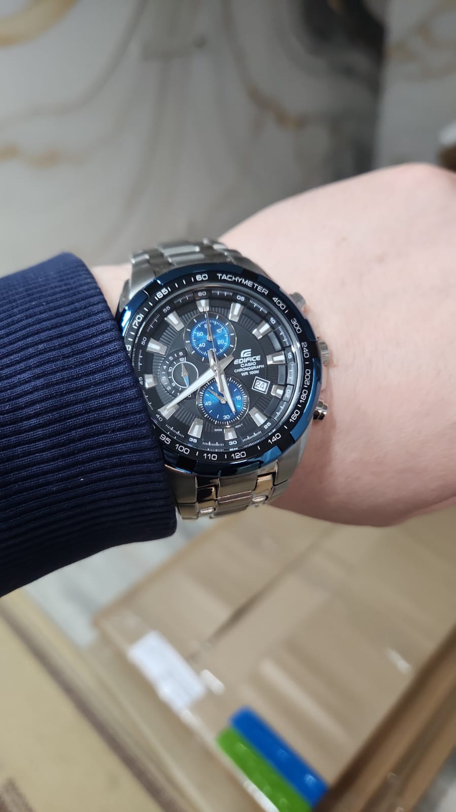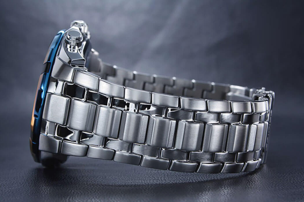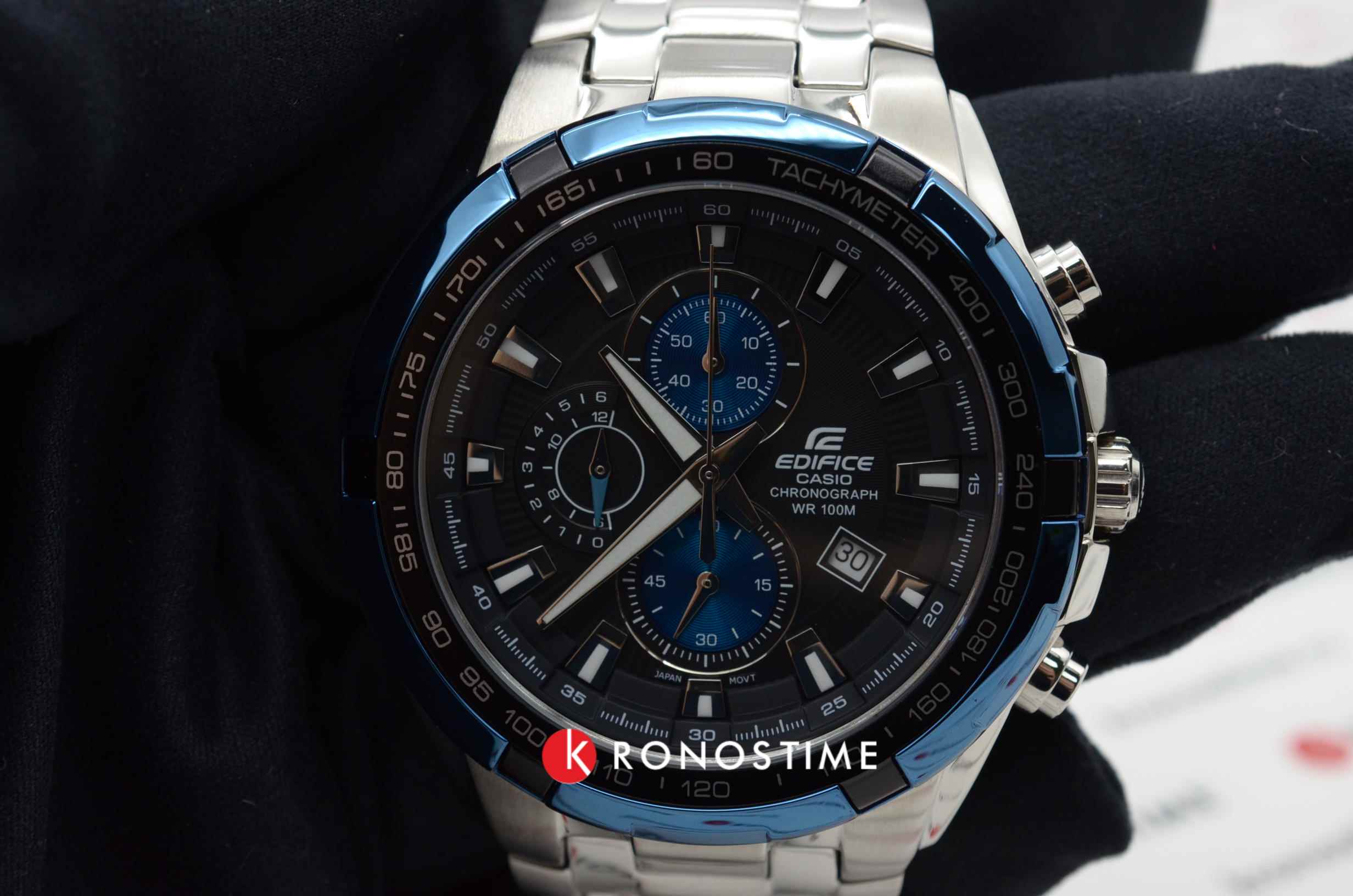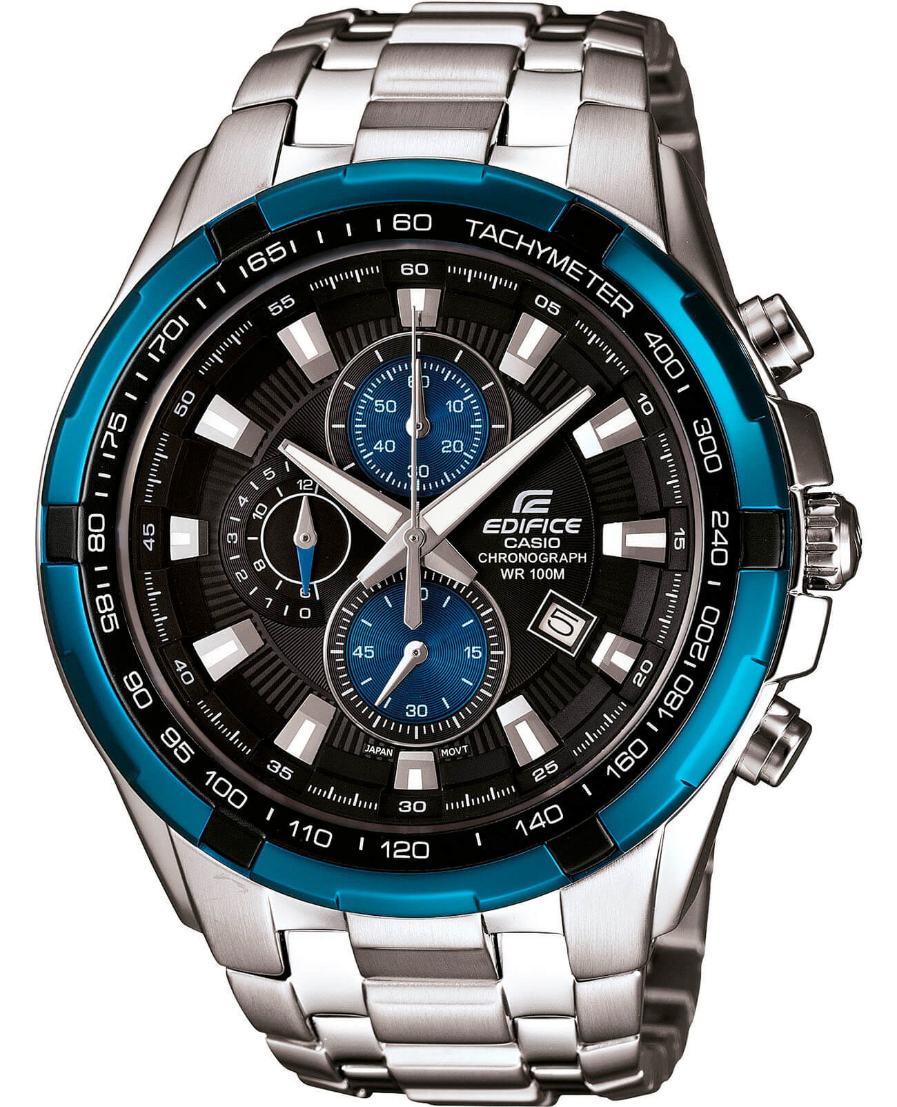 Стильная модель с синими элементами на вашем запястье будет привлекать внимание окружающих, оригинальное исполнение циферблата в сочетании с безупречным качеством используемых материалов даёт ошеломительный эффект. За точность хода +/- 30 секунд в месяц отвечает кварцевый механизм Miyota, батарейка рассчитана на 2 года работы. Минеральное стекло противостоит образованию царапин. Ударопрочный корпусУдаропрочный корпусМеханизм заключён в корпус, выполненный из современных материалов, устойчивых к ударам, механическим повреждениям и падению с высоты: инновационный пластик, карбон, нержавеющая сталь, титан. из нержавеющей стали 316L. Люминесцентная подсветкаЛюминесцентное покрытиеПозволяет считывать показания времени в темноте. Производители наносят на стрелки, часовые индексы, безель или поверхность циферблата светонакопительный состав, дающий холодное свечение.. Стальной браслет с предохранительной застёжкой. безельБезельВнешний ободок, закрепляющий стекло. В спортивных часах так называется поворотное кольцо с делениями на циферблате, выполняет роль таймера – замеряет отрезки времени на шкале. Неподвижный безель – элемент декора. Однонаправленно вращающийся безель на дайверских часах позволяет фиксировать моменты погружения и выныривания на поверхность. с IP-финишемIP-покрытиеМетод ионного напыления. Демонстрирует повышенную устойчивость к истиранию, окислению и химическим веществам. Под воздействием высокого давления и температуры около 1500°C молекулы металла надёжно соединяются с частицами корпуса часов.. Секундомер, хронографХронографФункция позволяет измерять отрезки времени с особой точностью: часы, минуты, секунды. Верным признаком хронографа является наличие на циферблате 3 дополнительных окошек-счётчиков., календарь, тахиметрТахиметрРазмеченная шкала, располагается на ободке или безеле часов. Тахиметр позволяет рассчитать скорость на определённом участке пути, расстояние измеряется в километрах или милях.. Габариты: 48,5 x 53,5 x 11,5 мм.