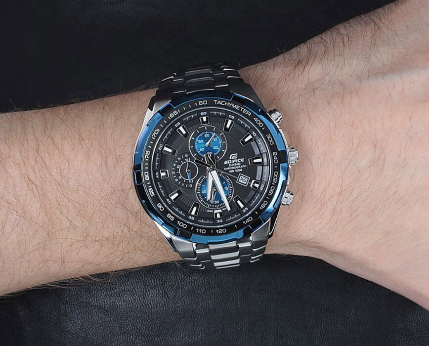 Японские мужские часы из коллекции Edifice являются отражением спортивного стиля, напоминая о динамичном дизайне гоночных автомобилей.