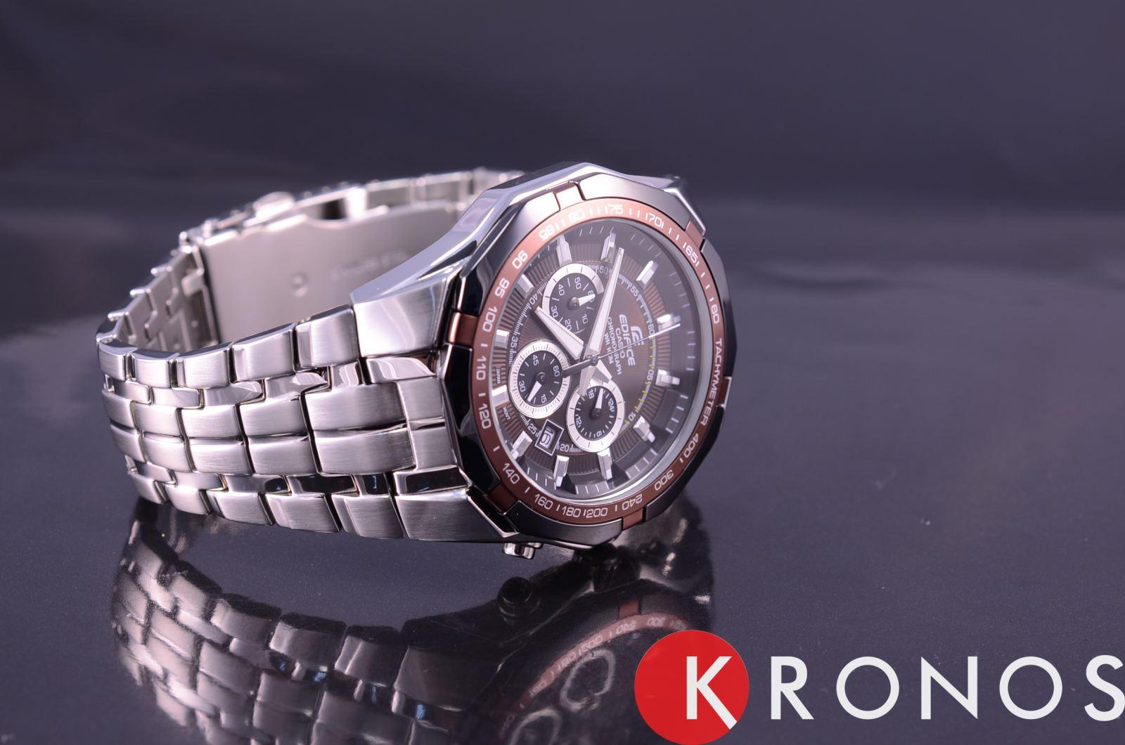 Стильный мужские наручные часы Casio Edifice надежные и практичные. Кварцевый японский механизм Miyota. Точность хода не хуже -10 +15 сек./в месяц. Часы оснащены функцией хронографа и тахиметра. Циферблат шоколадного цвета с контрастными индексами. Безель с IP покрытием коричневого цвета. Стрелки и индексы с светонакопительным нанесением. Корпус и браслет выполнены из высококачественной стали с антикоррозийными свойствами. Минеральное стекло устойчиво к появлению царапин. Водонепроницаемость 100М. В часах можно плавать.