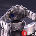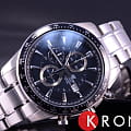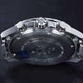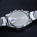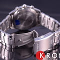 Высокоточный хронографХронографФункция позволяет измерять отрезки времени с особой точностью: часы, минуты, секунды. Верным признаком хронографа является наличие на циферблате 3 дополнительных окошек-счётчиков. в серебристо-чёрном исполнении понравится поклонникам автомобильной тематики. Тёмный циферблат с отдельными мини-счётчиками отличается крупной индикацией времени, позволяя без затруднений считывать показатели даже при мимолётном взгляде на дисплей. Кварцевый механизм получает энергию за счёт батарейки, рассчитанной на 2 года работы. Люминесцентная подсветкаЛюминесцентное покрытиеПозволяет считывать показания времени в темноте. Производители наносят на стрелки, часовые индексы, безель или поверхность циферблата светонакопительный состав, дающий холодное свечение.. Закалённое минеральное стекло. Водостойкость до 100 метров. Предохранительная застёжка. Секундомер, тахиметрТахиметрРазмеченная шкала, располагается на ободке или безеле часов. Тахиметр позволяет рассчитать скорость на определённом участке пути, расстояние измеряется в километрах или милях.. Габариты: 44,5 x 51,5 x 11,2 мм.