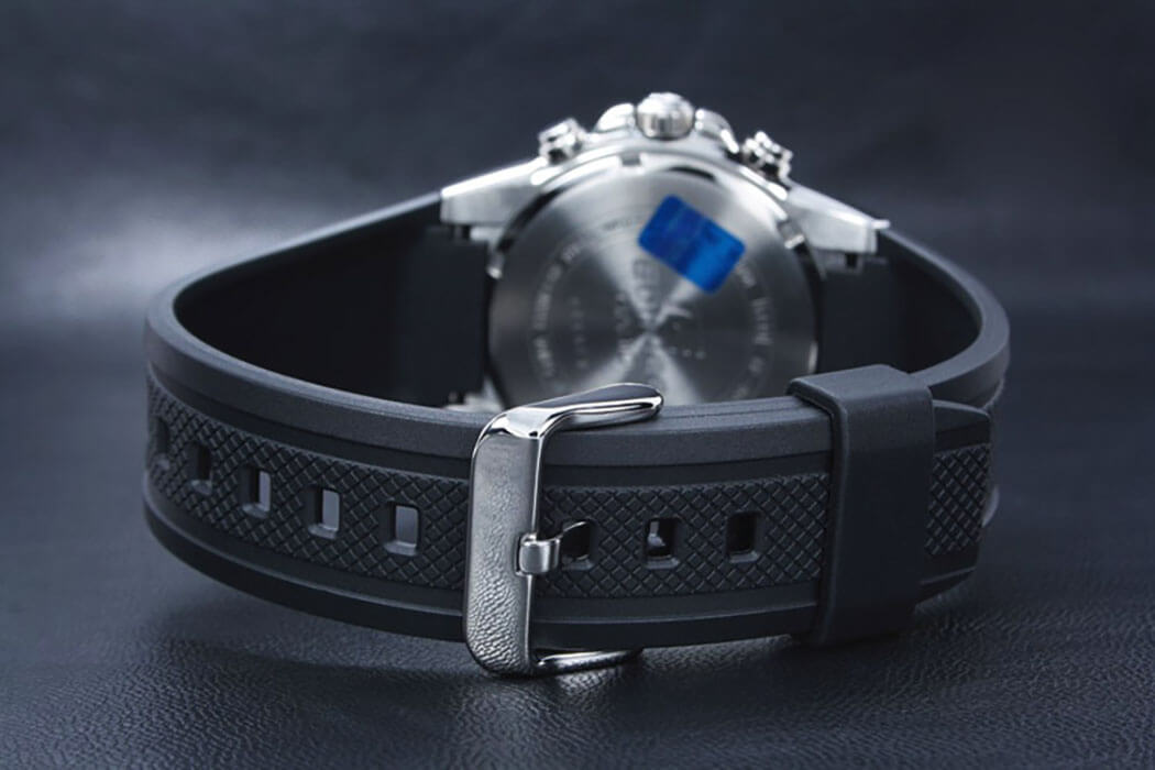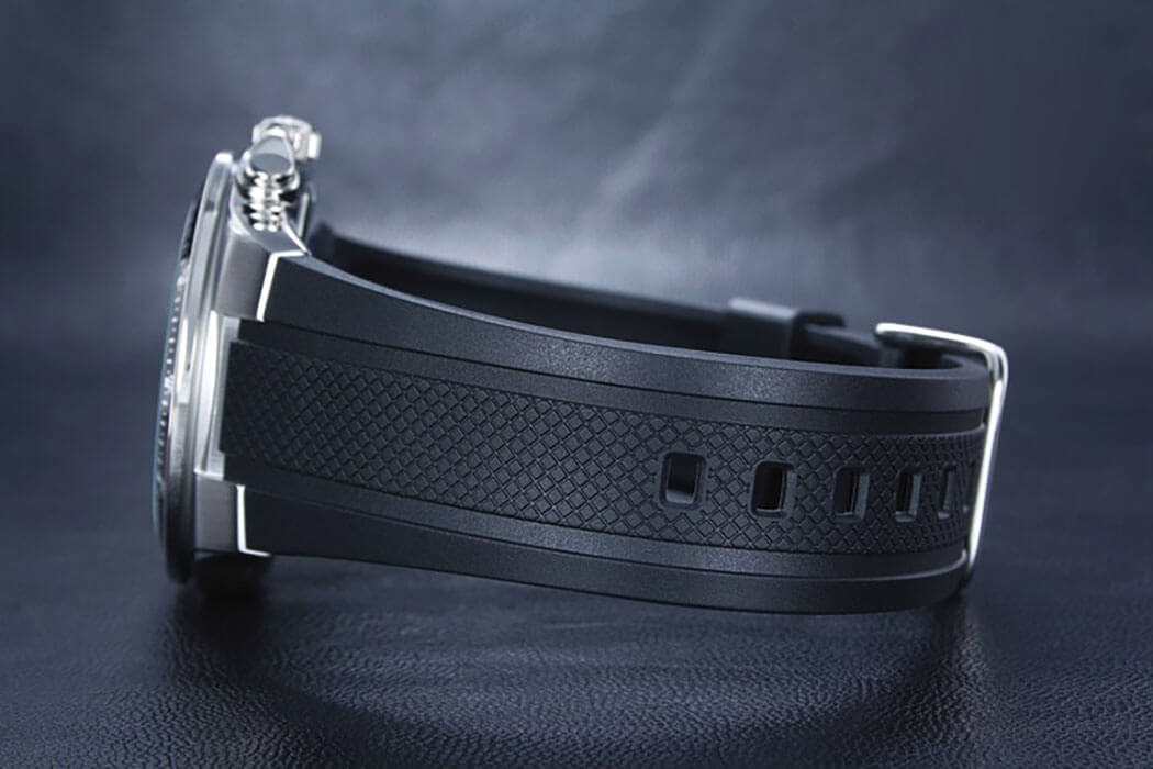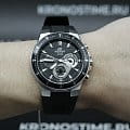 Аксессуар подарит вам истинное удовольствие не только при использовании, но и порадует оригинальным оформлением. Привлекательный узор, необычное расположение миниатюрных окошек-счётчиков, броские элементы - всё это являет тщательно проработанный дизайн. Чёрный безельБезельВнешний ободок, закрепляющий стекло. В спортивных часах так называется поворотное кольцо с делениями на циферблате, выполняет роль таймера – замеряет отрезки времени на шкале. Неподвижный безель – элемент декора. Однонаправленно вращающийся безель на дайверских часах позволяет фиксировать моменты погружения и выныривания на поверхность. имеет износоустойчивое PVD-покрытиеPVDУльтратонкое покрытие наносится в технике вакуумного напыления, сочетает в себе нитрид титана особой прочности со слоем золота или оксида хрома. Несёт в себе декоративную или защитную функцию.. Завинчивающаяся задняя крышка. Люминесцентное светонакопительное покрытиеЛюминесцентное покрытиеПозволяет считывать показания времени в темноте. Производители наносят на стрелки, часовые индексы, безель или поверхность циферблата светонакопительный состав, дающий холодное свечение. стрелок и меток. Минеральное стекло. Каучуковый гибкий ремешок. ХронографХронографФункция позволяет измерять отрезки времени с особой точностью: часы, минуты, секунды. Верным признаком хронографа является наличие на циферблате 3 дополнительных окошек-счётчиков., секундомер, отображение текущего числа. Габариты: 43,8 x 49,1 x 10,8 мм.