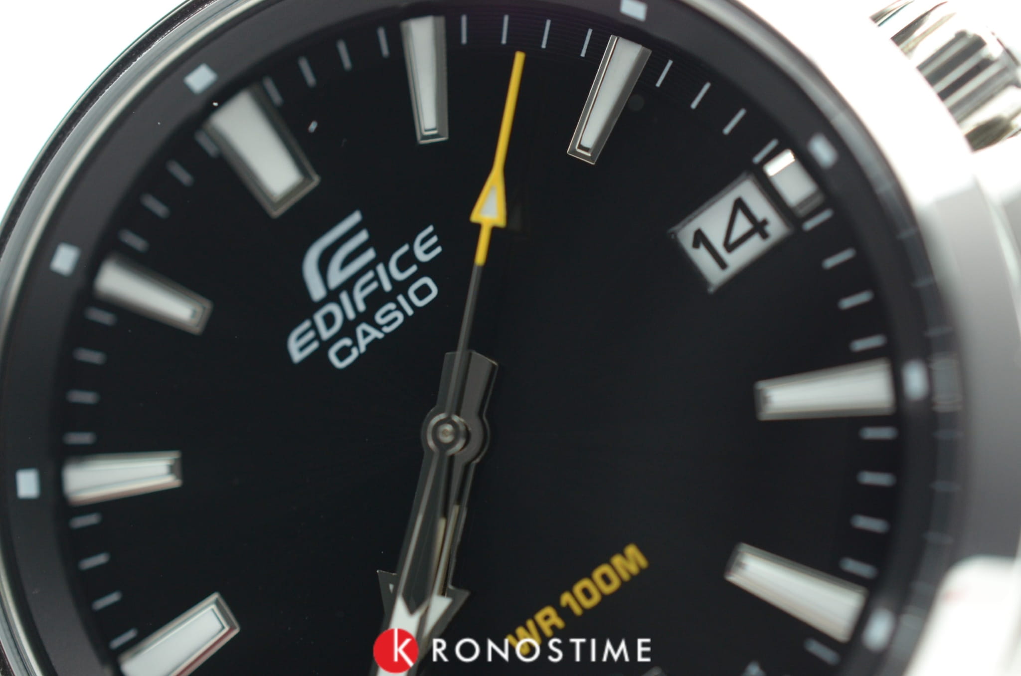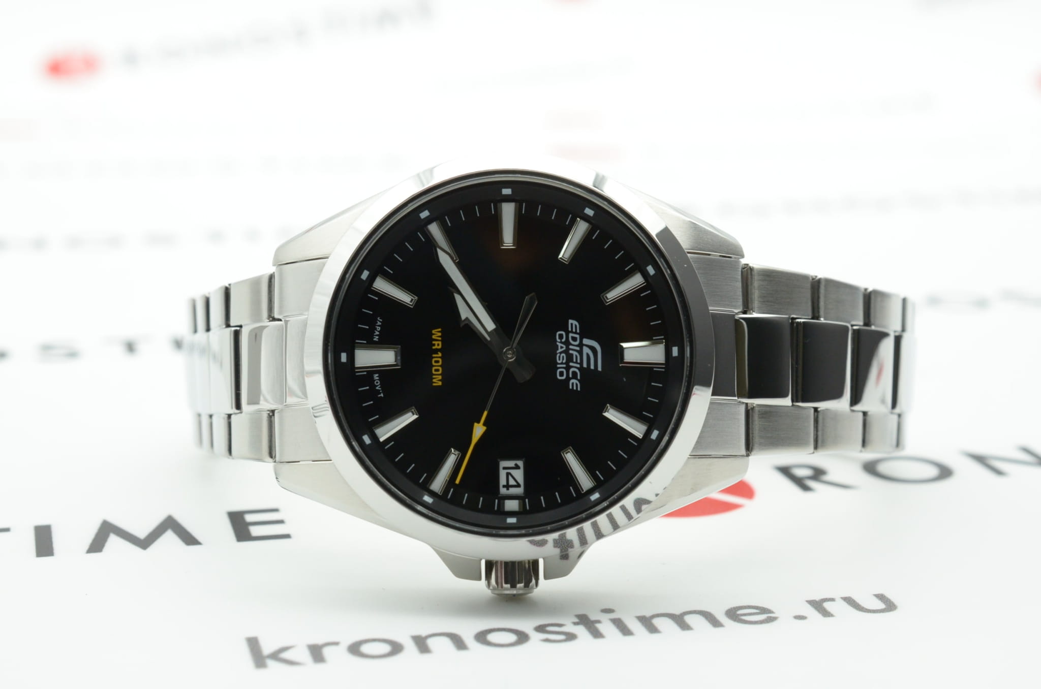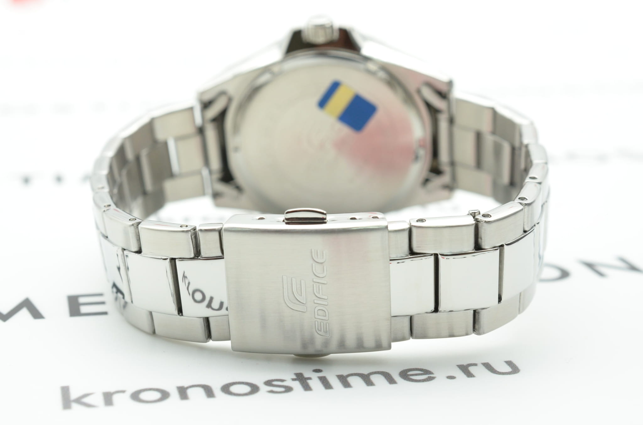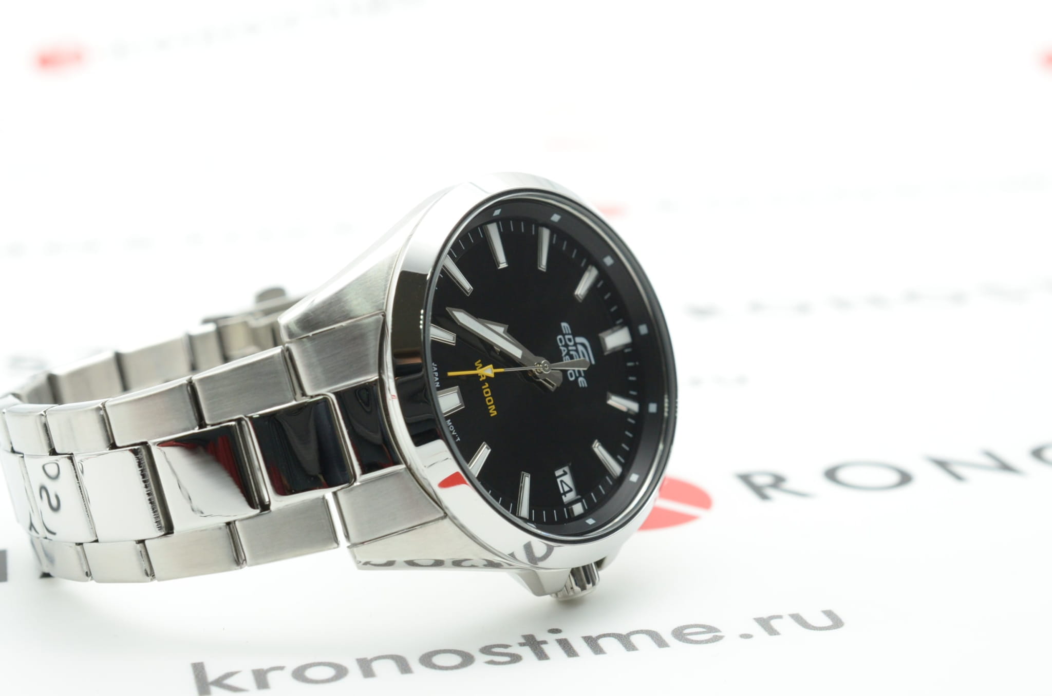 Брендовый аксессуар из серии EFV-100 будет отлично смотреться как с деловым костюмом, так и с повседневной одеждой. Стальной браслет на раскладной застёжкеРаскладная застёжкаТакой тип застёжки используется только на браслетах из металла. Она никогда не раскрывается полностью, происходит разделение на 2 и более частей. Раскладывающая застёжка снизит вероятность потери часов к минимуму.. Чёрный циферблат дополнен контрастными стрелками и метками, секундная стрелка облегчает читаемость показателей благодаря жёлтому наконечнику. Минималистичные часы выполнены из нержавеющей стали 316L, материал отличается долговечностью и устойчивостью к царапинам. Кварцевый механизм работает от батарейки, срок её службы составит 3 года. Подсветка NeobriteПодсветка NeobriteИспользование светонакопительных составов на основе сульфида цинка или алюмината стронция, яркий свет можно наблюдать на протяжении 6-10 часов после «зарядки» часов около источника света. продолжает светиться в темноте даже после непродолжительного пребывания на свету. Водостойкость 10 бар. Минеральное стеклоМинеральное стеклоМинеральное стекло представляет собой искусственно выращенный минерал кварца. Такое стекло отличается особой устойчивостью к повреждениям и царапинам. Уступает по некоторым качествам сапфировому стеклу.. Прямоугольная апертура даты. Габариты: 48 x 42 x 10,9 мм.