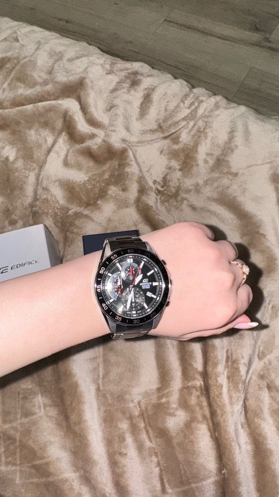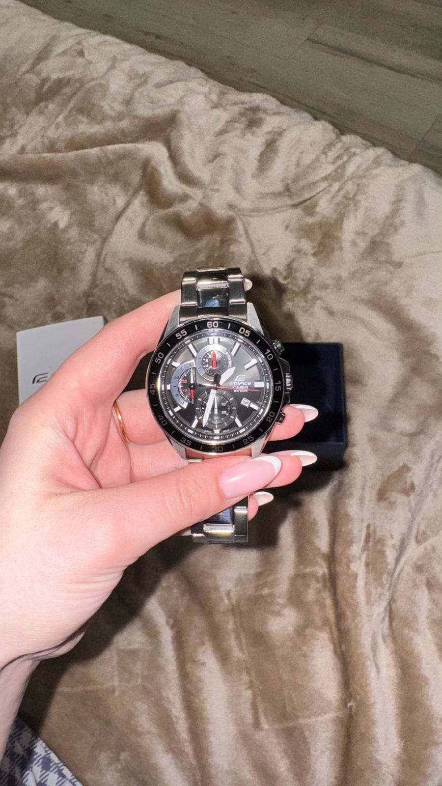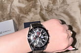 Компания Casio выпустила новинку Edifice — стильный хронографХронографФункция позволяет измерять отрезки времени с особой точностью: часы, минуты, секунды. Верным признаком хронографа является наличие на циферблате 3 дополнительных окошек-счётчиков. из серии EFV-550. Окошки секундомераСекундомерСекундоме́р — прибор, способный измерять интервалы времени с точностью до долей секунды. очень напоминают приборную доску автомобиля. Люминесцентное покрытиеЛюминесцентное покрытиеПозволяет считывать показания времени в темноте. Производители наносят на стрелки, часовые индексы, безель или поверхность циферблата светонакопительный состав, дающий холодное свечение. на стрелках и метках. В серии пять моделей разных цветов, причем две со стальным браслетом и три с кожаным ремешком. Часы водонепроницаемые, обладают секундомером, отображают дату.