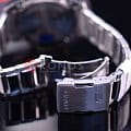 Стильные наручные часы с крупными элементами оформления будут выгодно смотреться в качестве дополнения для повседневного образа, динамики придают детали синего и голубого цвета. Часы обладают технологией Bluetooth 4.0BluetoothСовременная технология, позволяющая синхронизировать часы с телефоном и переносить данные. Часы с Bluetooth расширяют возможности вашего смартфона и делают его использование ещё более удобным. с низким потреблением энергии, данные передаются нажатием кнопки. Интерес представляет также наличие солнечной батареи , аккумулятор получает питание от солнечного света, обеспечивая автономную работу аксессуара. Индикатор заряда батареи позволяет следить за уровнем заряда батарейки. Минеральное стекло. Люминесцентная подсветка NeobriteПодсветка NeobriteИспользование светонакопительных составов на основе сульфида цинка или алюмината стронция, яркий свет можно наблюдать на протяжении 6-10 часов после «зарядки» часов около источника света.. Корпус и браслет из нержавеющей стали 316L. Заводная головка с системой защиты. БезельБезельВнешний ободок, закрепляющий стекло. В спортивных часах так называется поворотное кольцо с делениями на циферблате, выполняет роль таймера – замеряет отрезки времени на шкале. Неподвижный безель – элемент декора. Однонаправленно вращающийся безель на дайверских часах позволяет фиксировать моменты погружения и выныривания на поверхность. со шкалой тахиметраТахиметрРазмеченная шкала, располагается на ободке или безеле часов. Тахиметр позволяет рассчитать скорость на определённом участке пути, расстояние измеряется в километрах или милях.. Функции: поиск телефона, секундомер, хронографХронографФункция позволяет измерять отрезки времени с особой точностью: часы, минуты, секунды. Верным признаком хронографа является наличие на циферблате 3 дополнительных окошек-счётчиков., будильник, календарь, мировое времяМировое время Полезное часовое усложнение, отображающее время в основных городах и известных областях по всему миру, оно связано с часовыми поясами, удобно для путешественников и бизнесменов. . Водозащита 100 метров. Габариты: 53,5 x 49,2 x 13,1 мм.