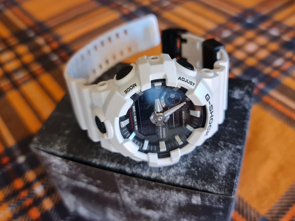 Японские мужские часы-хронографХронографФункция позволяет измерять отрезки времени с особой точностью: часы, минуты, секунды. Верным признаком хронографа является наличие на циферблате 3 дополнительных окошек-счётчиков. Casio G-Shock GA-700-7AER. Противоударный пластиковый корпус с карбоновыми волокнами более прочный и, в то же время, более легкий. Минеральное стеклоМинеральное стеклоМинеральное стекло представляет собой искусственно выращенный минерал кварца. Такое стекло отличается особой устойчивостью к повреждениям и царапинам. Уступает по некоторым качествам сапфировому стеклу. устойчивое к появлению царапин, обладающее высокой прозрачностью. Ударопрочный корпусУдаропрочный корпусМеханизм заключён в корпус, выполненный из современных материалов, устойчивых к ударам, механическим повреждениям и падению с высоты: инновационный пластик, карбон, нержавеющая сталь, титан. защищает механизм от ударов и вибрации. Многокомпонентный циферблат состоит из цифровых окошек указателей числа и дня недели, а также индикатора режима работы часов, который расположен в позиции 9 часов и выполнен в виде пропеллера. Светодиодная автоподсветка NeobriteПодсветка NeobriteИспользование светонакопительных составов на основе сульфида цинка или алюмината стронция, яркий свет можно наблюдать на протяжении 6-10 часов после «зарядки» часов около источника света. - при повороте часов в сторону лица подсветка дисплея осуществляется автоматически. Настраиваемое послесвечение 1,5 или 3сек. Мировое времяМировое время Полезное часовое усложнение, отображающее время в основных городах и известных областях по всему миру, оно связано с часовыми поясами, удобно для путешественников и бизнесменов. – 48 городов (29 часовых поясов). СекундомерСекундомерСекундоме́р — прибор, способный измерять интервалы времени с точностью до долей секунды. с точностью измерения 1/100 секунды и измерением до 23 часов 59 минут 59,99 cек. ТаймерТаймерОтсчитывает секунды в обратном направлении в заданном интервале времени. обратного отсчета (диапазон времени 24 часа), автоматический календарь, 12/24 отображение времени. 5 будильниковБудильникБуди́льник — часы, в заданный момент времени подающие звуковой, световой и/или в редких случаях другой сигнал., один с функцией Snooze, ежечасный сигнал. Класс водозащиты: 200 метров, позволит плавать, нырять и заниматься другими водными видами спорта. Ремешок из полимерного материала на стандартной застежке.