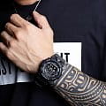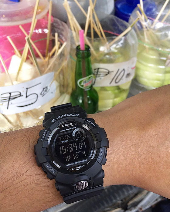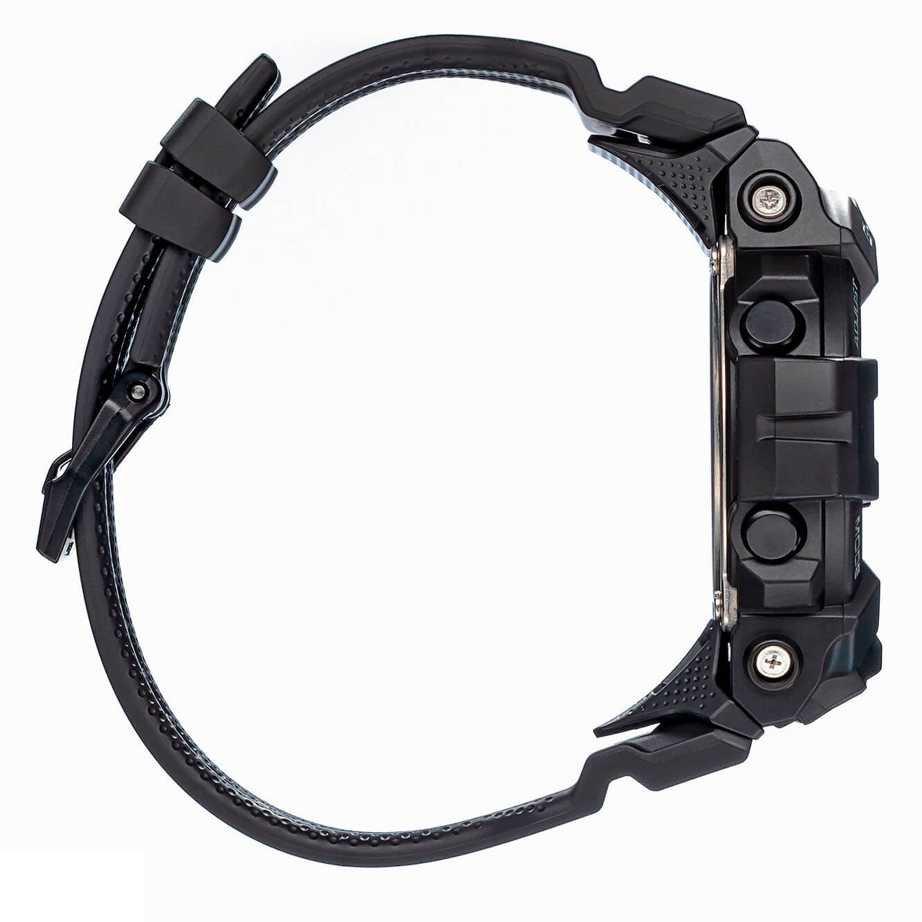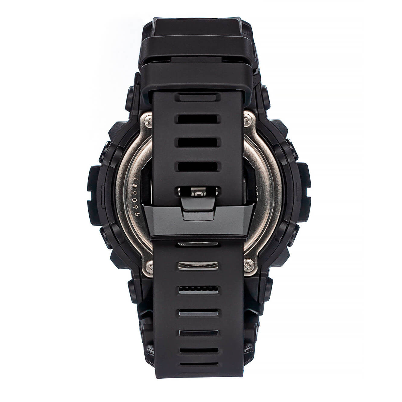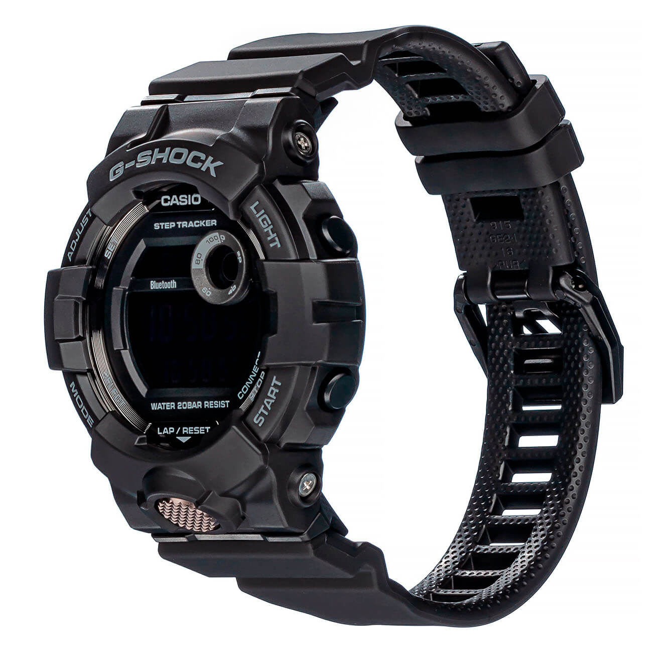 Аксессуар в сдержанном чёрном исполнении идеально гармонирует с любой одеждой. Это незаменимый атрибут для каждого спортсмена, ведь весь функционал часов направлен на повышение эффективности тренировок. Это и шагомер с измерением количества шагов от 0 до 999999, и секундомер с памятью на 200 кругов, мультифункциональный таймер, будильник поможет не проспать раннее занятие в спортзале. С внедрением технологии BluetoothBluetoothСовременная технология, позволяющая синхронизировать часы с телефоном и переносить данные. Часы с Bluetooth расширяют возможности вашего смартфона и делают его использование ещё более удобным. появилась возможность передавать все данные на смартфон, а в приложении G-Shock Connected Phone рассчитывать ежедневную норму шагов и учитывать сожжённые калории. Японский кварцевый калибр работает от батарейки, срок службы которой - 3 года. Пластиковый противоударный корпусУдаропрочный корпусМеханизм заключён в корпус, выполненный из современных материалов, устойчивых к ударам, механическим повреждениям и падению с высоты: инновационный пластик, карбон, нержавеющая сталь, титан.. Браслет из полимерного материала. Минеральное стекло. Стрелки с люминесцентной подсветкойЛюминесцентное покрытиеПозволяет считывать показания времени в темноте. Производители наносят на стрелки, часовые индексы, безель или поверхность циферблата светонакопительный состав, дающий холодное свечение., яркая светодиодная подсветкаСветодиодная подсветкаСветодиодная или LED-подсветка обеспечивает появление яркого холодного свечения за счёт LED-элементов - маленьких лампочек. Они потребляют минимальное количество энергии, чаще всего можно встретить 1 светодиод, в нижней части циферблата. циферблата. Водозащита до 20 бар. Мировое времяМировое время Полезное часовое усложнение, отображающее время в основных городах и известных областях по всему миру, оно связано с часовыми поясами, удобно для путешественников и бизнесменов. , автоматический календарь до 2099 года, хронографХронографФункция позволяет измерять отрезки времени с особой точностью: часы, минуты, секунды. Верным признаком хронографа является наличие на циферблате 3 дополнительных окошек-счётчиков.. Габариты: 54,1 x 48,6 x 15,5 мм.