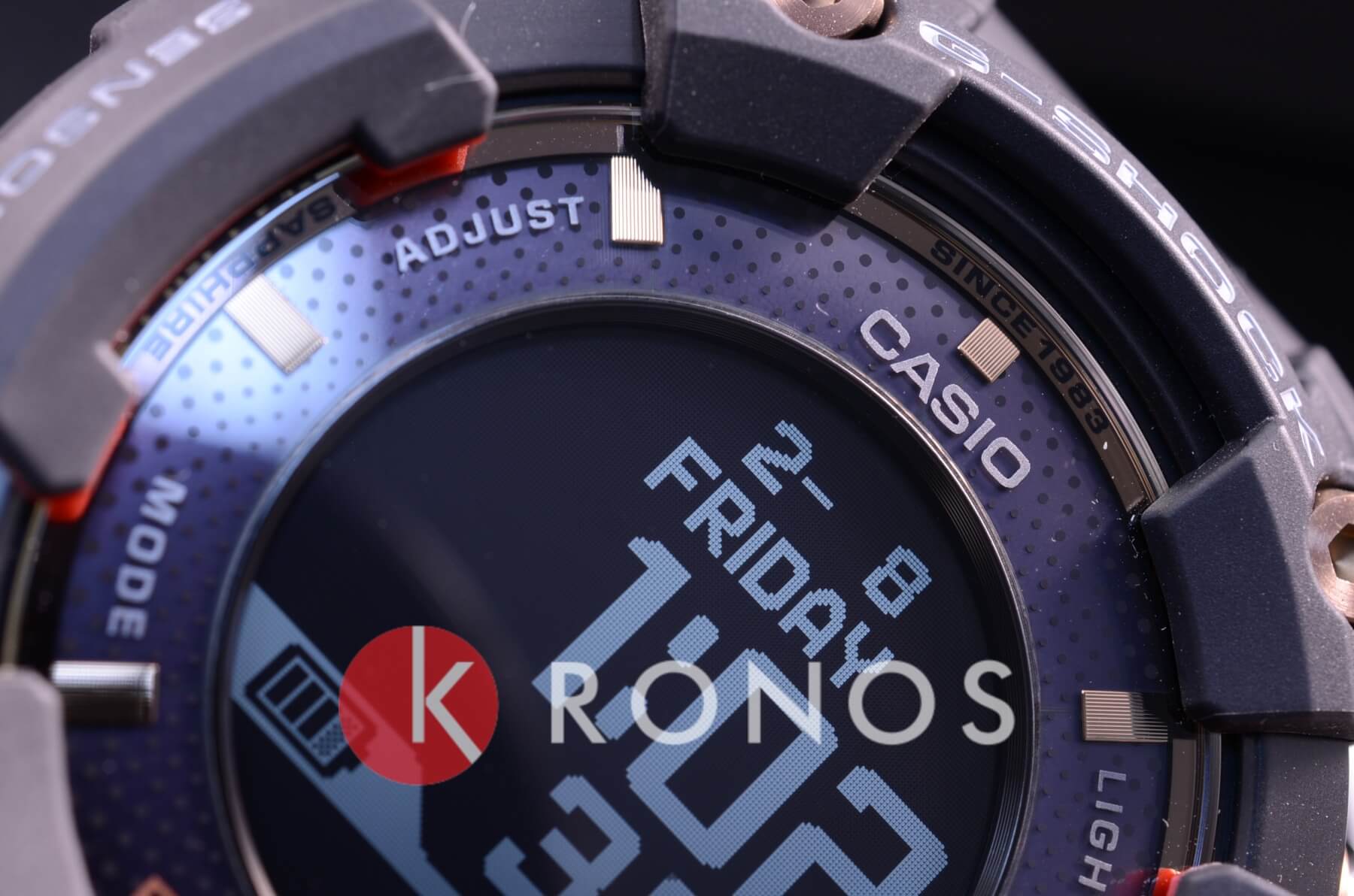 Дизайн отсылается к опасным и завораживающим потокам лавы, цветовая палитра выражена в чёрном, красном, золотом оттенках. Модель выдержит любые погодные условия и температуру до -20°C, ей не страшны удары, вибрации и падения с высоты. Массивные и брутальные часы стильно смотрятся на руке, не вызывая дискомфорта при ношении. Идеальным дополнением стал ремешок из карбона и полимера cо внутренней стороной красного цвета. Аксессуар станет универсальным помощником в путешествиях и походах, ведь в вашем распоряжении появляется множество функций: цифровой компас, хронографХронографФункция позволяет измерять отрезки времени с особой точностью: часы, минуты, секунды. Верным признаком хронографа является наличие на циферблате 3 дополнительных окошек-счётчиков., будильник, барометр, высотомер, лунный календарь, GPS, термометр, Bluetooth-синхронизацияBluetoothСовременная технология, позволяющая синхронизировать часы с телефоном и переносить данные. Часы с Bluetooth расширяют возможности вашего смартфона и делают его использование ещё более удобным., а также функция энергосбережения. Стальной безельБезельВнешний ободок, закрепляющий стекло. В спортивных часах так называется поворотное кольцо с делениями на циферблате, выполняет роль таймера – замеряет отрезки времени на шкале. Неподвижный безель – элемент декора. Однонаправленно вращающийся безель на дайверских часах позволяет фиксировать моменты погружения и выныривания на поверхность. с IP-покрытиемIP-покрытиеМетод ионного напыления. Демонстрирует повышенную устойчивость к истиранию, окислению и химическим веществам. Под воздействием высокого давления и температуры около 1500°C молекулы металла надёжно соединяются с частицами корпуса часов.. Технология . Стекло из сапфира с антибликовым покрытием. Подсветка циферблата. Водостойкость 200 метров. Габариты: 60,3 x 57,7 x 20,2 мм.