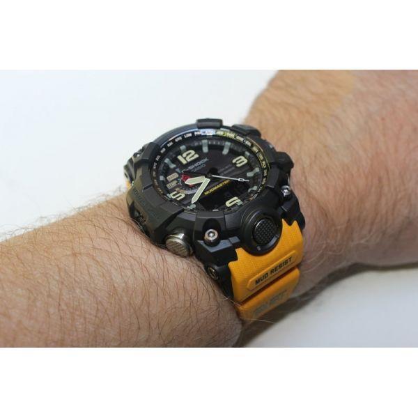 Ударопрочные мужские часы из коллекции Master of G выполнены в стиле миллитари. Исполнение премиум-класса, грязеустойчивые, с водонепроницаемостью в 20 атмосфер. Кварцевые часы с аналоговым и цифровым способами отображения времени, и с корпусом, выполненым из пластика и высокопрочной стали. Черный циферблат защищает надежное сапфировое стекло. Браслет ярко-оранжевого цвета из прочного пластика. Вес часов 119 грамм. Часы Casio GWG-1000-1A9 оснащены множеством дополнительных функций: компас, термометр, таймер обратного отсчета, барометр, высотомер, секундомер, индикатор запаса хода, подсветкой стрелок и дисплея. Заряжаются часы от солнечной батареи, в режиме сохранения энергии сохраняют работоспособность без подзарядки в течении 25 месяцев.