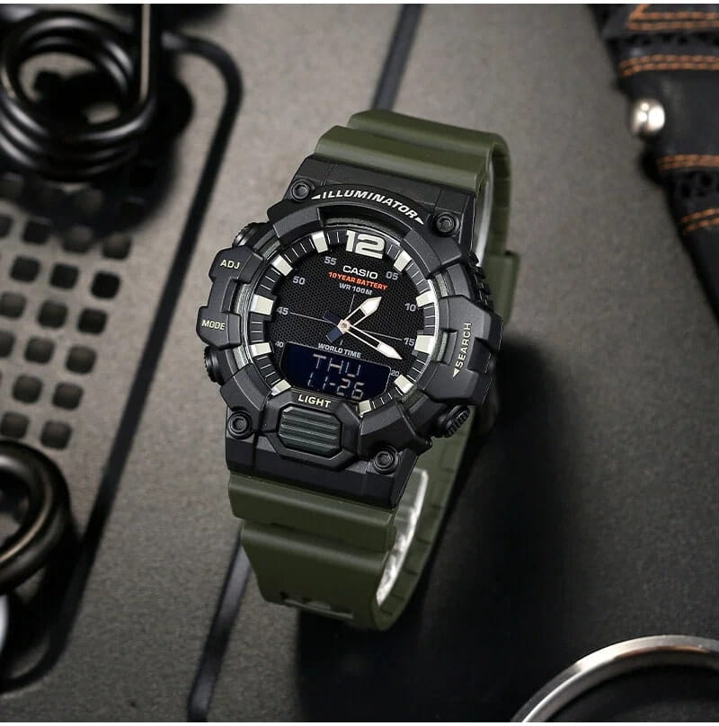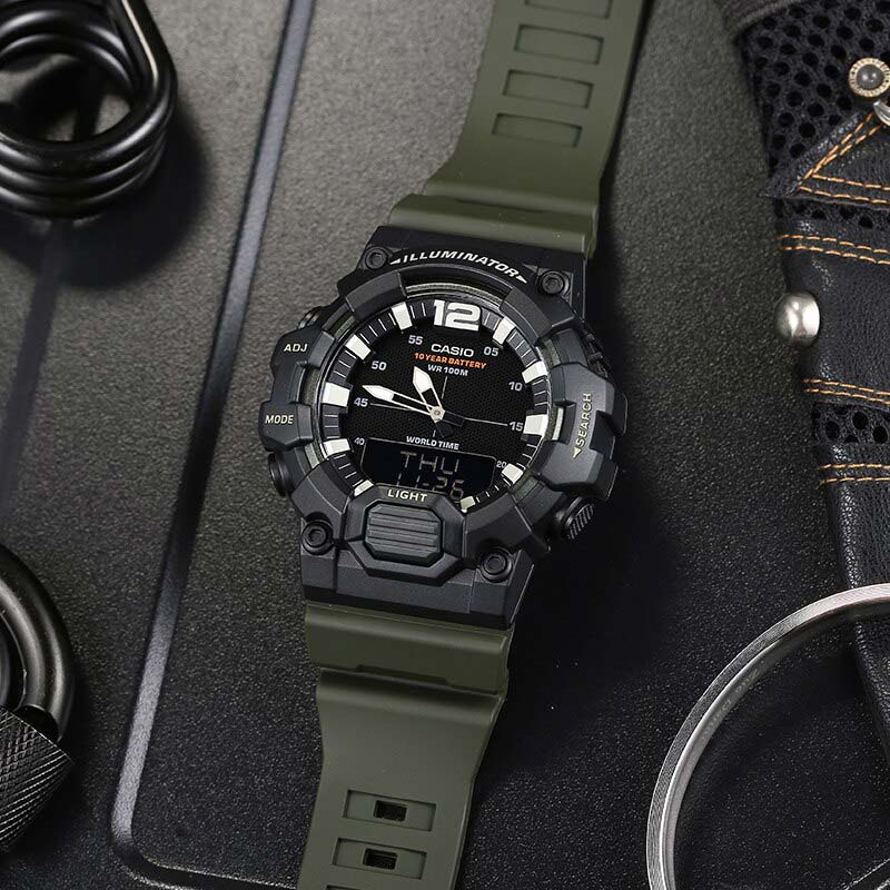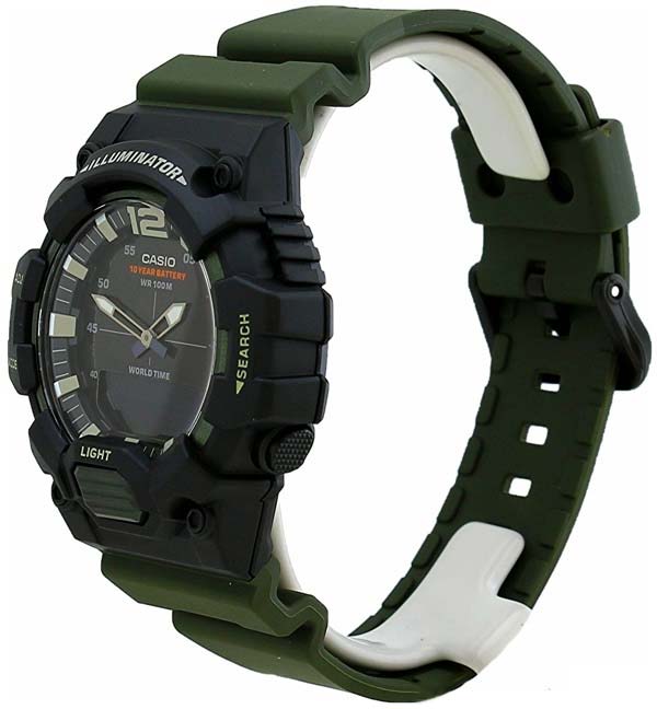 Спортивные японские мужские наручные часы c хронографомХронографФункция позволяет измерять отрезки времени с особой точностью: часы, минуты, секунды. Верным признаком хронографа является наличие на циферблате 3 дополнительных окошек-счётчиков. Casio Collection HDC-700-3A, кварцевый механизм с высокой точностью. Класс водозащиты: 100 метров, позволит плавать, нырять и заниматься другими водными видами спорта. Корпус часов изготовлен из пластика. Пластиковый ремешок на стандартной застёжке. Циферблат подсвечивается светодиодомСветодиодная подсветкаСветодиодная или LED-подсветка обеспечивает появление яркого холодного свечения за счёт LED-элементов - маленьких лампочек. Они потребляют минимальное количество энергии, чаще всего можно встретить 1 светодиод, в нижней части циферблата.. Записная книжка на 30 ячеек памяти для записи имен и телефонных номеров, каждая запись может включать в себя текст из 8 букв и 16 цифр. Мировое времяМировое время Полезное часовое усложнение, отображающее время в основных городах и известных областях по всему миру, оно связано с часовыми поясами, удобно для путешественников и бизнесменов. – 30 городов (29 часовых поясов). Функция включения/отключения летнего времени. 12-ти и 24-х часовой формат времени. СекундомерСекундомерСекундоме́р — прибор, способный измерять интервалы времени с точностью до долей секунды. с точностью показаний 1/100с и временем измерения 24ч. Сплит-хронографХронографФункция позволяет измерять отрезки времени с особой точностью: часы, минуты, секунды. Верным признаком хронографа является наличие на циферблате 3 дополнительных окошек-счётчиков.. ТаймерТаймерОтсчитывает секунды в обратном направлении в заданном интервале времени. обратного отсчета от 1мин до 24ч. Функция включения/отключения звука.