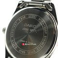 Модные часы от Casio в повседневном стиле способны покорить сердца любителей качества и комфорта. Прочный браслет из гипоаллергенной латуни надежно закреплен со стальным браслетом. Благодаря раскладывающейся застежке, вероятность потери аксессуара очень мала. Фактурный безельБезельВнешний ободок, закрепляющий стекло. В спортивных часах так называется поворотное кольцо с делениями на циферблате, выполняет роль таймера – замеряет отрезки времени на шкале. Неподвижный безель – элемент декора. Однонаправленно вращающийся безель на дайверских часах позволяет фиксировать моменты погружения и выныривания на поверхность. добавляет аксессуару привлекательности. На эффектном циферблате насыщенно-синего цвета расположены временные отметки в виде серебристых штрихов. Миниатюрный календарь в угловой рамке уведомляет о текущей дате. Подсветка NeobriteПодсветка NeobriteИспользование светонакопительных составов на основе сульфида цинка или алюмината стронция, яркий свет можно наблюдать на протяжении 6-10 часов после «зарядки» часов около источника света. позволяет определять время в темное время суток. Минеральное стекло. Водонепроницаемость составляет 50 WR. Кварцевый тип механизма. Срок службы батарейки равен 3 годам.