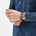 Эффектный дизайн выдержан в серебристом и черном цветах. Круглый корпус сделан из гипоаллергенной латуни. Долговечный мягкий ремень из натуральной кожи будет изящно обрамлять запястье. Есть небольшой календарь с текущей датой. Минеральное стекло надежно защищает изделие от царапин. Подсветка NeobriteПодсветка NeobriteИспользование светонакопительных составов на основе сульфида цинка или алюмината стронция, яркий свет можно наблюдать на протяжении 6-10 часов после «зарядки» часов около источника света. обеспечивает видимость показателей в темноте. Кварцевый механизм. Батарейка работает 3 года. Водонепроницаемость составляет 50 WR.