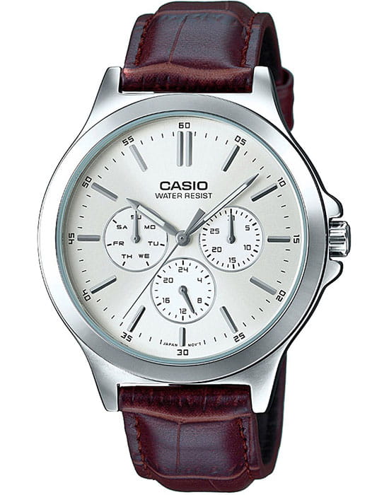 Мужские японские наручные часы из линейки MTP Collection умело сочетают в себе винтажные элементы и спортивный стиль, часы придутся по вкусу ценителям японского качества и лаконичности. Высокотехнологичный аксессуар обладает строгим стилем и традиционной формой циферблата. Сдержанные, классические цвета и плавные линии позволяют носить часы, не снимая, их универсальность идеально подходит для делового костюма, повседневной одежды или образа для вечернего выхода. Для корпуса использована нержавеющая сталь 316L, за счёт чего достигается повышенная устойчивость к повреждениям и ударам. Надежные часы которые прослужат много лет. Модель комплектуется надёжным механизмом, точность хода которого составляет +/- 20 сек/мес.