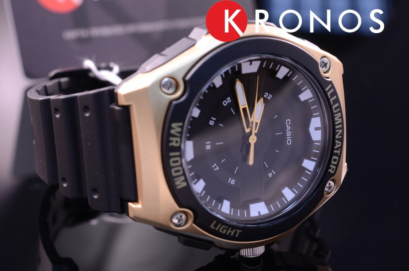 Корпус наручных часов от Casio выполнен из полимерного пластика. Прочный ремешок из полимерного материала надежно закрепляется на запястье. Отсчет совершают модные стрелки золотистого цвета. Для удобства время отображается в 12- и 24-часовом формате. С помощью светодиодной подсветкиСветодиодная подсветкаСветодиодная или LED-подсветка обеспечивает появление яркого холодного свечения за счёт LED-элементов - маленьких лампочек. Они потребляют минимальное количество энергии, чаще всего можно встретить 1 светодиод, в нижней части циферблата., есть возможность считывать информацию в темное время суток. Акриловое стекло. Высокая водонепроницаемость в 100 WR позволяет свободно плавать в воде. Кварцевый механизм. Батарейка служит 3 года.