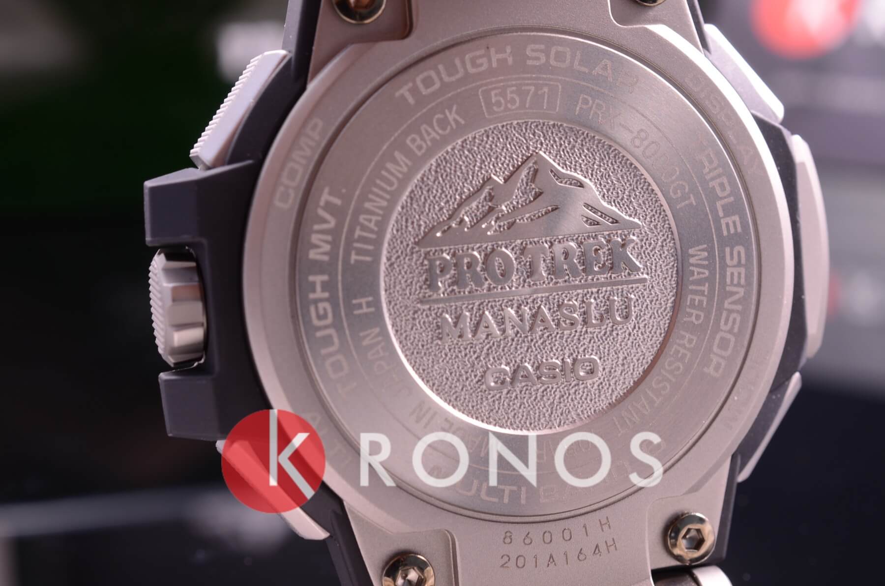 Casio представляет новую модель из Premium линейки Protek «MANASLU», которая получила свое название от горы «Manaslu (Manasluu)» 8163 м на высоте Гималаев, также известной как гора духа, на которую японская команда впервые поднялась в 1956 году Зеркальная отделка улучшает текстуру и выражает цвет каменной горы Манаслу Кроме того, синий цвет выражает цвет неба Гималаев, белый указатель выражает снежный и ледовый цвет Гималаев
