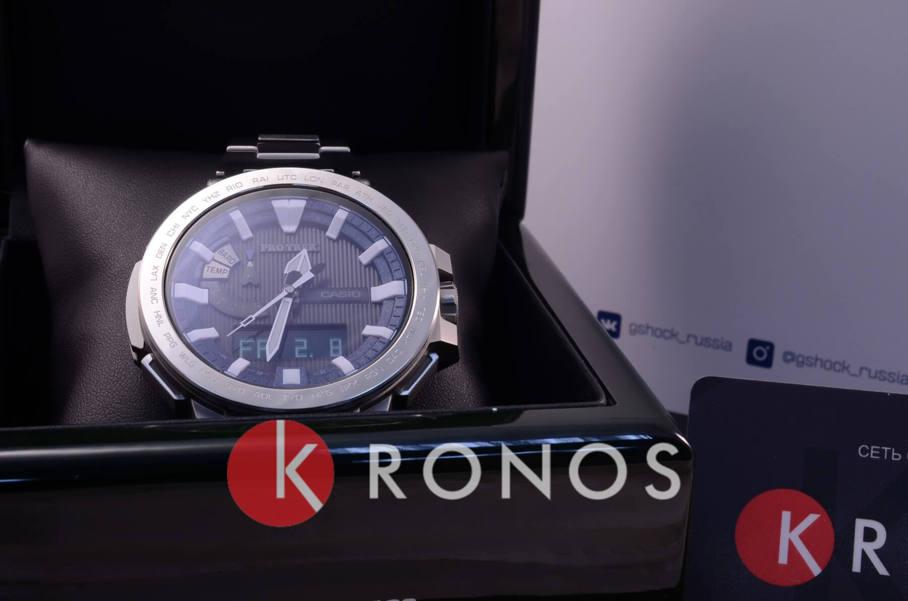 PRX-8000GT-7PR - модель, которая на сегодняшний день считается одной из лучших для занятий профессиональным альпинизмом Сверхнадежные часы отличаются не только премиальным дизайном, богатым набором функций, но и превосходной считываемостью информации, поэтому спокойно могут быть использованы альпинистами даже на высоте 8 километров Самые ключевые детали корпуса этой модели выполнены из высокопрочного сплава титана, который для дополнительной стойкости покрыт слоем карбида титана Корона часов, безель и все кнопки обработаны покрытием DLC (углеродное алмазное вещество) Циферблат со стрелками с двойной люминесцентной обработкой для лучшей видимости в темноте покрыт сверхпрочным сапфировым стеклом PRX-8000GT-7PR имеют максимальную защиту, поэтому не боятся ни ударов, ни вибрации, ни погружения в воду (до 100 метров), ни перепадов температур (до -10°C), да и трудно найти что-то такое, что могло бы их сильно повредить Конечно, при желании можно разбить любые защищенные часы, но в альпинизме, где всякое случается, модель PRX-8000T – это самый надежный помощник, который точно не подведет