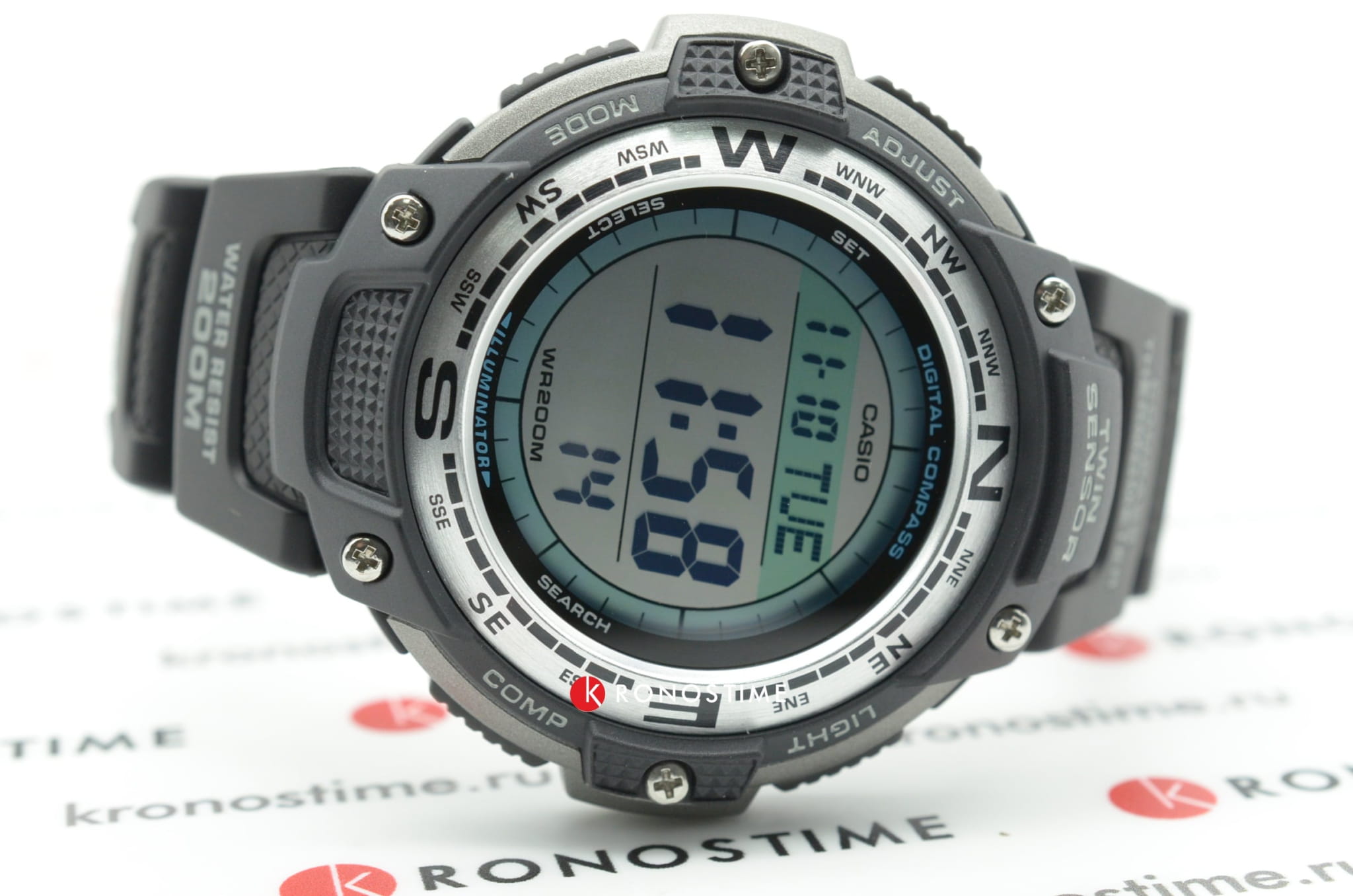 Корпус и браслет многофункциональных и стильных часов от Casio выполнены из высокопрочных полимерных материалов. Есть функции для определения погоды. Часы способны выдержать температуру даже ниже, чем -10 °C. Секундомер измеряет прошедшее время с точностью в 1/100 секунды. Быть максимально пунктуальными помогут 5 независимых будильников. Встроен цифровой компас. Электролюминесцентная подсветкаЭлектролюминесцентная подсветкаЭлектролюминесцентная панель устанавливается под ЖК-экраном часов, при нажатии кнопки электричество преобразуется в свет за счёт подачи напряжения на атомы фосфора, такой тип подсветки позволяет освещать весь циферблат. обеспечивает видимость информации в темноте. Высокая водонепроницаемость в 200 WR.