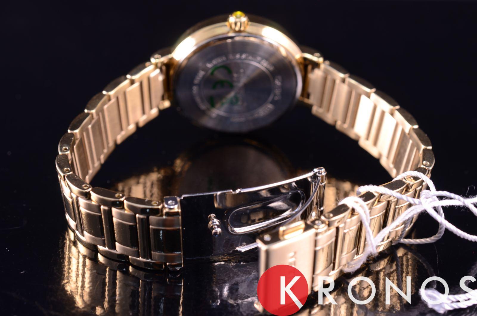 Стильные женские наручные часы, выполненные в fashion стиле. Кварцевые часы с элементом питания SR920SW. Корпус и браслет часов выполнены из высокопрочной стали с антикоррозийными свойствами с IP покрытием. Циферблат с позолоченными римскими цифрами. Водонепроницаемость часов 50 метров, минеральное стекло, устойчивое к царапинам. Украшены часы кристаллами Swarovski.