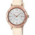 Тонкий кремовый ремешок из натуральной кожи стильно смотрится на запястье, брендовый аксессуар идеально сочетается как с повседневными джинсами, так и с вечерним платьем. Наручные часы инкрустированы стразами Swarovski, роскошное сияние которых позволит вам всегда находиться в центре внимания. Кварцевый механизм обеспечивает безупречную точность хода. Прочный корпус с IP-покрытиемIP-покрытиеМетод ионного напыления. Демонстрирует повышенную устойчивость к истиранию, окислению и химическим веществам. Под воздействием высокого давления и температуры около 1500°C молекулы металла надёжно соединяются с частицами корпуса часов. розового золота. Минеральное стекло. Апертура даты. Габариты: 30 x 36,7 x 5,8 мм.