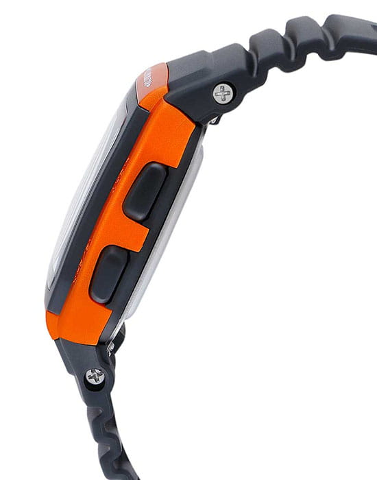 Наручные часы выполнены в спортивном стиле, привлекательно смотрится вставка оранжевого цвета. Надёжный аксессуар никогда не подведёт вас, ведь он оснащён уникальной батарейкой, эксплуатационный срок которой рассчитан на 10 лет. Кварцевый механизм японского производства. светодиодная подсветка IlluminatorСветодиодная подсветкаСветодиодная или LED-подсветка обеспечивает появление яркого холодного свечения за счёт LED-элементов - маленьких лампочек. Они потребляют минимальное количество энергии, чаще всего можно встретить 1 светодиод, в нижней части циферблата.. Прочное органическое стекло сферической формы. Корпус и браслет из полимерного материала. Водонепроницаемость до 5 бар. Базовый функционал: секундомер, будильник, календарь, мировое времяМировое время Полезное часовое усложнение, отображающее время в основных городах и известных областях по всему миру, оно связано с часовыми поясами, удобно для путешественников и бизнесменов. . 12/24-часовое отображение времени. Габариты: 43,9 x 35,7 x 12,5 мм.