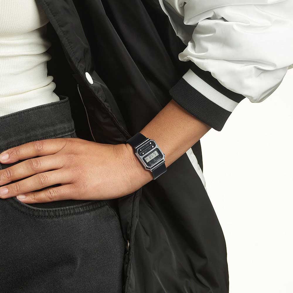 Унисекс наручные часы c хронографомХронографФункция позволяет измерять отрезки времени с особой точностью: часы, минуты, секунды. Верным признаком хронографа является наличие на циферблате 3 дополнительных окошек-счётчиков. Casio Vintage A100WEL-1AEF, кварцевый механизм с высокой точностью. Класс водозащиты: 30 метров, позволит защитить корпус от случайных брызг или капель дождя. Корпус часов изготовлен из пластика. Часы являются копией модели F-100, которая была первой моделью Casio в пластиковом корпусе. Отличительной чертой часов являются 4 кнопки на лицевой панели. Циферблат подсвечивается светодиодомСветодиодная подсветкаСветодиодная или LED-подсветка обеспечивает появление яркого холодного свечения за счёт LED-элементов - маленьких лампочек. Они потребляют минимальное количество энергии, чаще всего можно встретить 1 светодиод, в нижней части циферблата.. Цвет подсветки: оранжевый. СекундомерСекундомерСекундоме́р — прибор, способный измерять интервалы времени с точностью до долей секунды. с точностью показаний 1/10с и временем измерения 1ч. Водонепроницаемость в соответствии с DIN 8310/ISO 2281. Батарея рассчитана на 3 года. Ремешок с классической застежкой.