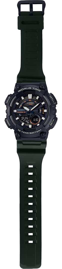 Спортивные японские мужские наручные часы Casio Collection AEQ-110W-3AVDF (AEQ-110W-3A), кварцевый механизм с высокой точностью. Класс водозащиты: 100 метров, позволит плавать, нырять и заниматься другими водными видами спорта. Корпус часов изготовлен из пластика, цвета.