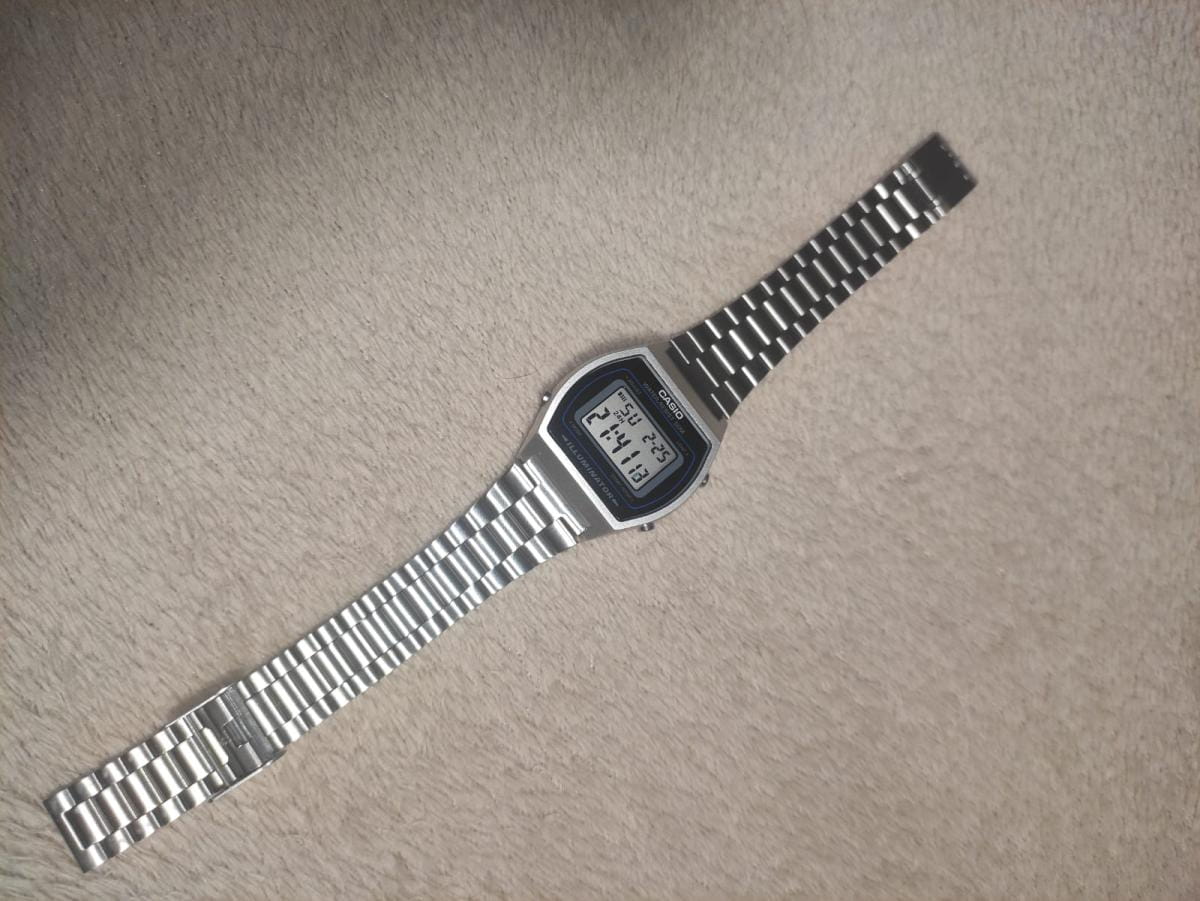 Аксессуар наделён винтажным квадратным корпусом, выполненным из прочного пластика. Он надёжно защищает японский кварцевый механизм, обеспечивающий высокую точность хода. Он работает от батарейки, рассчитанной на 3 года. Дисплей оснащён светодиодной подсветкойСветодиодная подсветкаСветодиодная или LED-подсветка обеспечивает появление яркого холодного свечения за счёт LED-элементов - маленьких лампочек. Они потребляют минимальное количество энергии, чаще всего можно встретить 1 светодиод, в нижней части циферблата.. Дополнительные функции: будильник, секундомер, таймер, календарь.