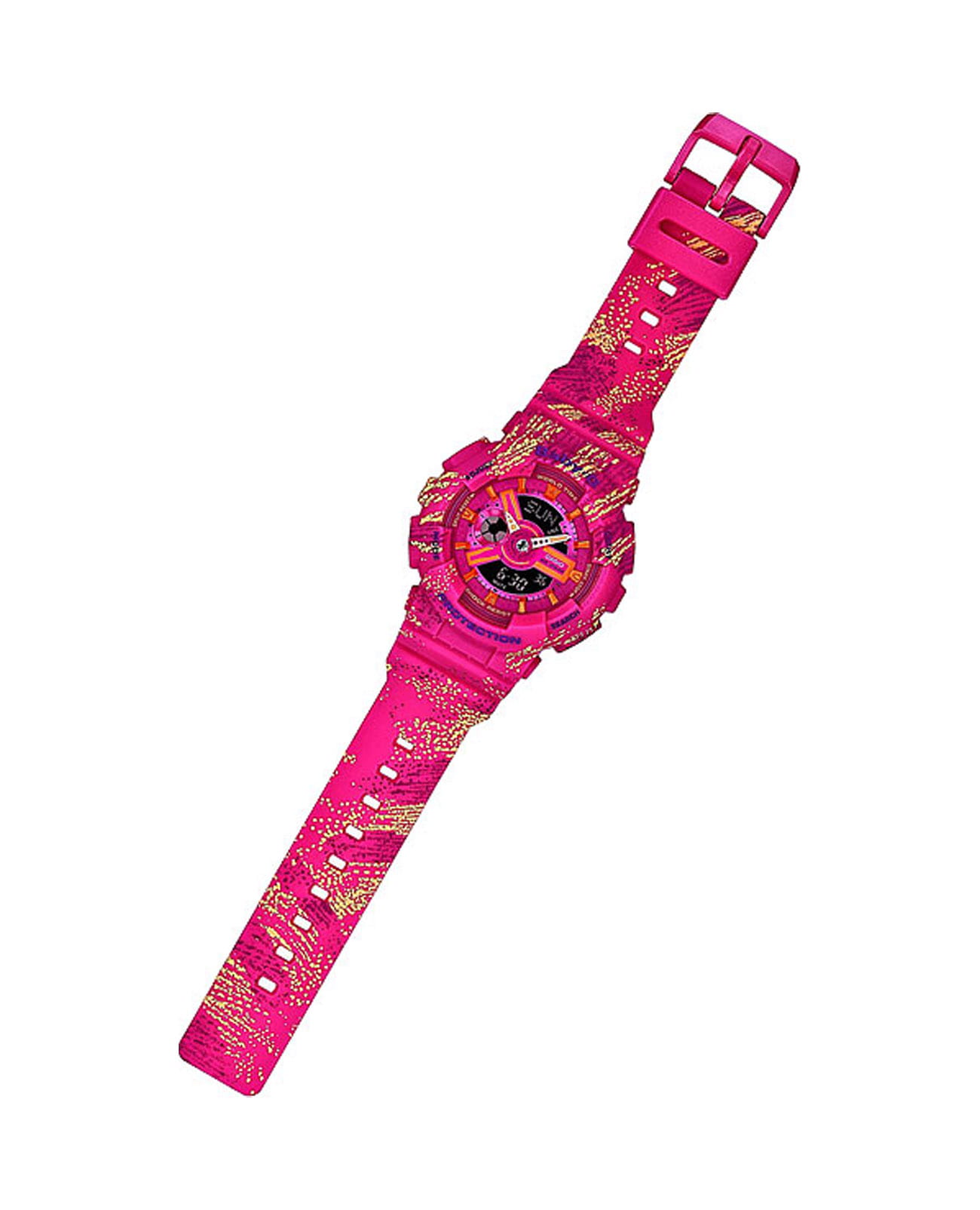Японские женские часы-хронографХронографФункция позволяет измерять отрезки времени с особой точностью: часы, минуты, секунды. Верным признаком хронографа является наличие на циферблате 3 дополнительных окошек-счётчиков. Casio Baby-G BA-110TX-4A из коллекции Baby-G. Серия, которая выражает спортивность и цвет, которые являются основой бренда Baby-G. Минеральное стеклоМинеральное стеклоМинеральное стекло представляет собой искусственно выращенный минерал кварца. Такое стекло отличается особой устойчивостью к повреждениям и царапинам. Уступает по некоторым качествам сапфировому стеклу. устойчивое к появлению царапин, обладающее высокой прозрачностью. Корпус часов изготовлен из полимерного материала. Функции: автоматическая светодиодная подсветка.Необритовое покрытиеПодсветка NeobriteИспользование светонакопительных составов на основе сульфида цинка или алюмината стронция, яркий свет можно наблюдать на протяжении 6-10 часов после «зарядки» часов около источника света. продолжает светиться в темноте даже после непродолжительного пребывания на свету.Ударопрочный корпусУдаропрочный корпусМеханизм заключён в корпус, выполненный из современных материалов, устойчивых к ударам, механическим повреждениям и падению с высоты: инновационный пластик, карбон, нержавеющая сталь, титан. защищает механизм от ударов и вибрации. Функция Мирового времениМировое время Полезное часовое усложнение, отображающее время в основных городах и известных областях по всему миру, оно связано с часовыми поясами, удобно для путешественников и бизнесменов. . СекундомерСекундомерСекундоме́р — прибор, способный измерять интервалы времени с точностью до долей секунды. с точностью измерения 1/100 секунды и измерением до 23 часов 59 минут 59,99 cек. ТаймерТаймерОтсчитывает секунды в обратном направлении в заданном интервале времени. обратного отсчета (диапазон времени 24 часа), автоматический календарь, 12/24 отображение времени. 5 ежедневных будильниковБудильникБуди́льник — часы, в заданный момент времени подающие звуковой, световой и/или в редких случаях другой сигнал.. Функция включения/отключения звука. Класс водозащиты: 100 метров, позволит плавать без погружения. Ремешок из полимерного материала на стандартной застежке.